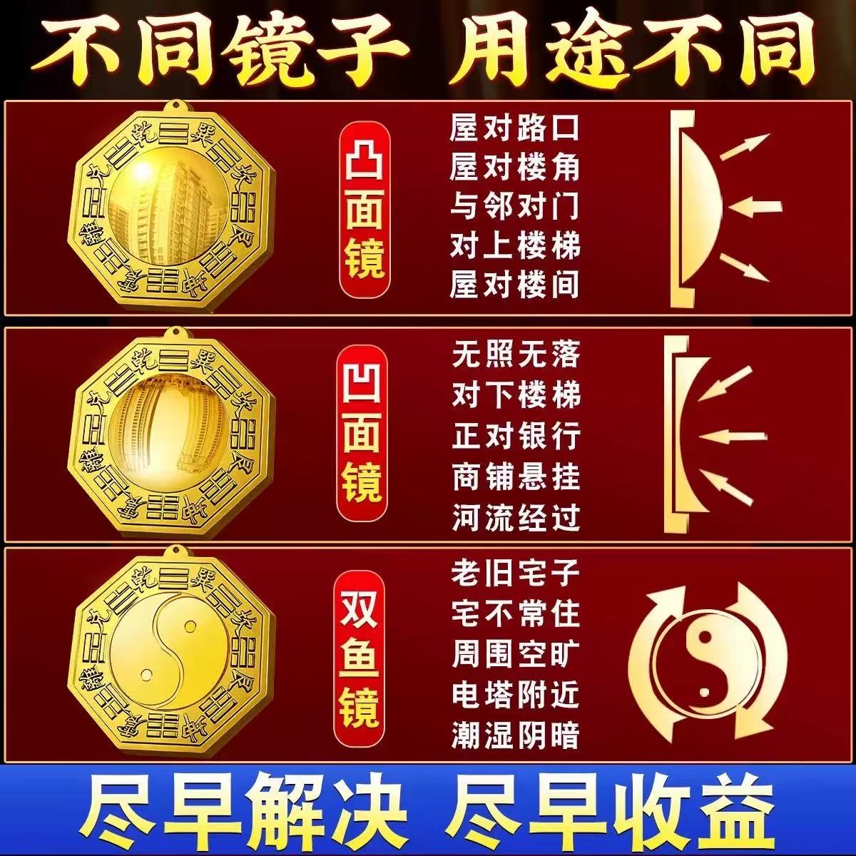 纯黄铜八卦镜凸镜凹镜阴阳太极镜大门口窗户阳台对路尖角电梯镜子