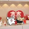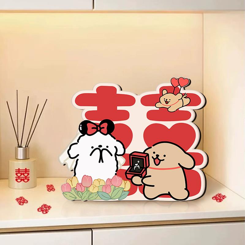 可爱线条小狗囍字摆件情侣订婚桌面摆台新婚结婚婚房布置装饰礼物