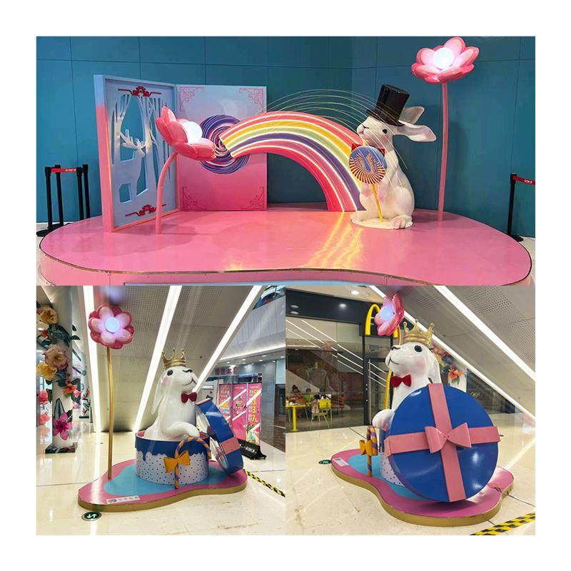 大型玻璃钢雕塑定制卡通彩绘吉祥物户外网红兔子摆件美陈系列