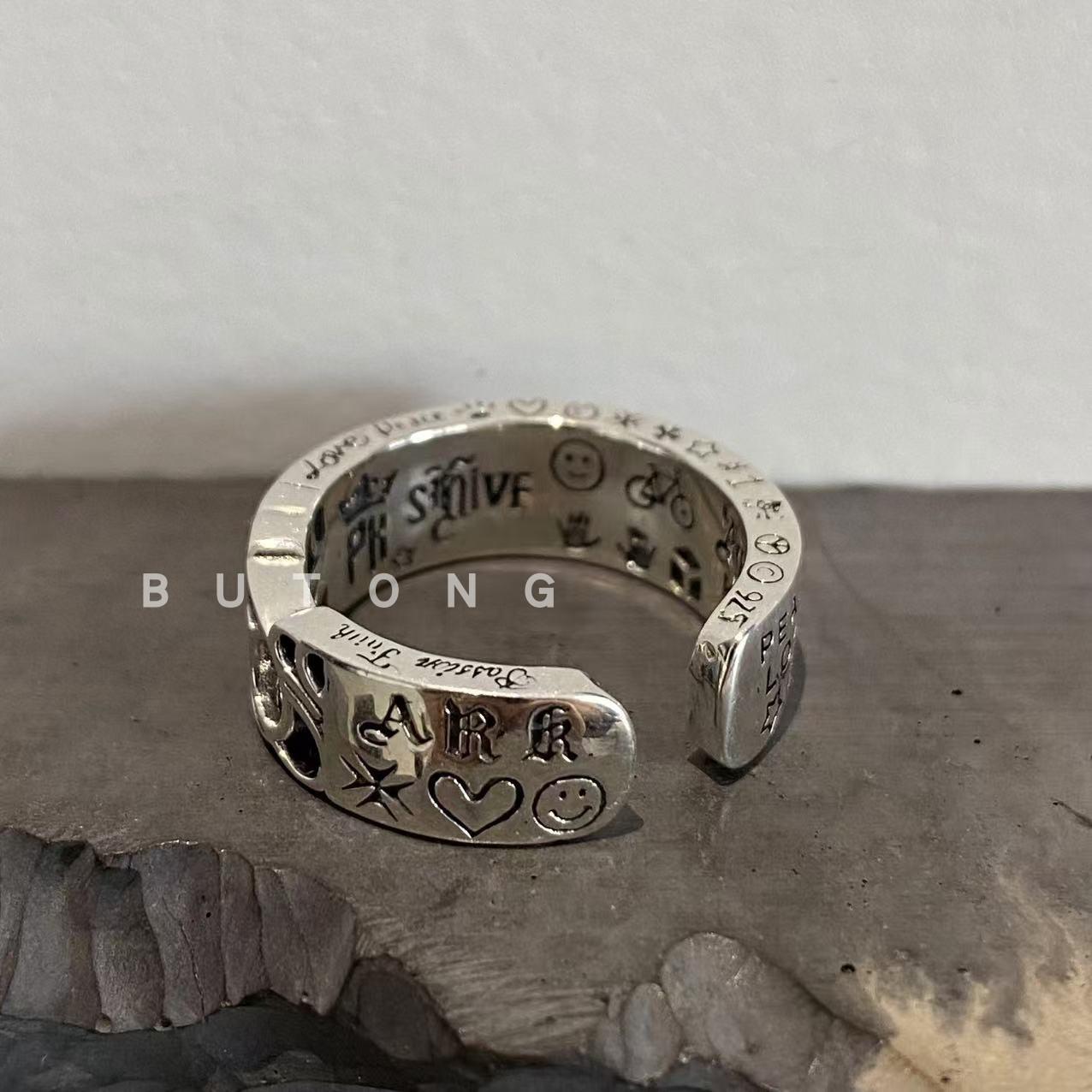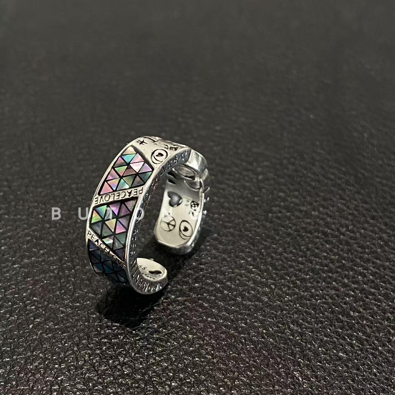 不同银匠 925纯银彩贝几何涂鸦图腾开口戒指女轻奢小众设计高级感