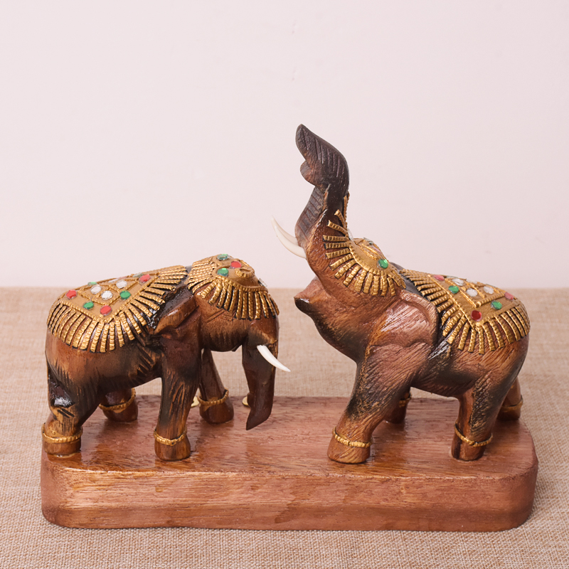 大象摆件一对招财镇宅家居饰品z笔筒实木质客厅办公室桌面开业礼