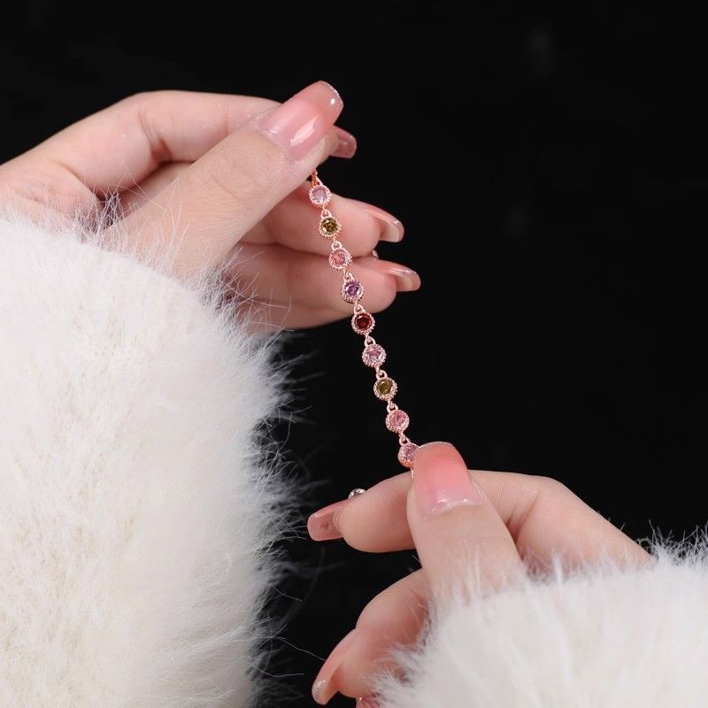 日系cherry kitty轻奢高级感七彩闪钻手链女vingate森系少女手环