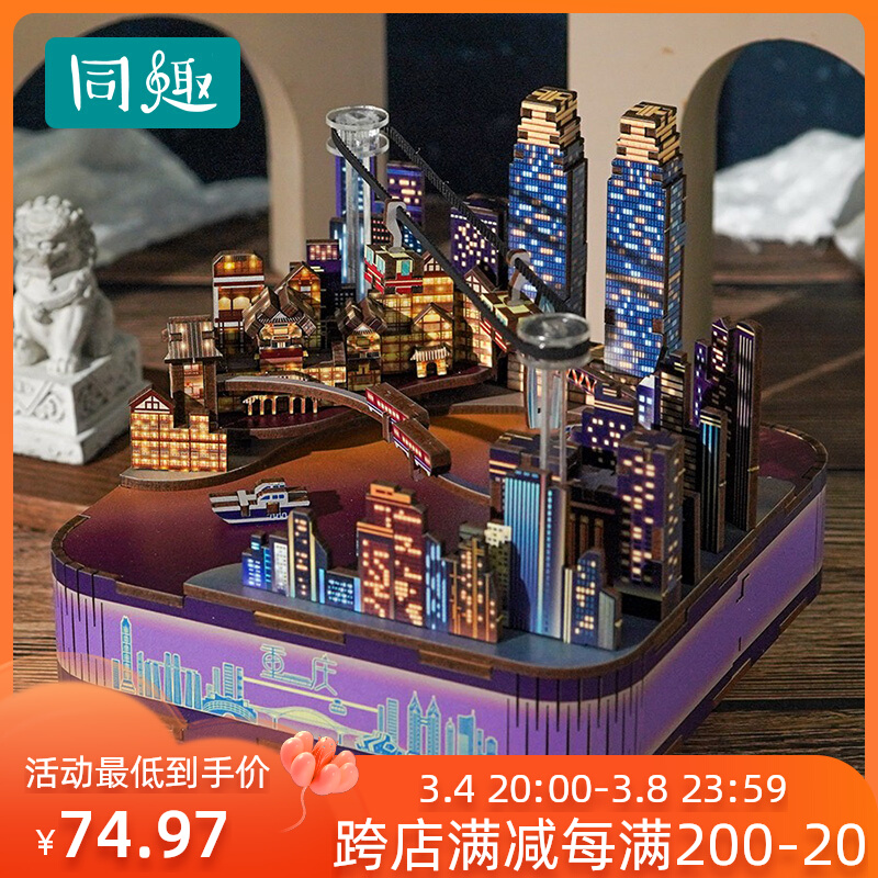 同趣文创重庆时代八音盒手工DIY长江国际创意家居模型摆件音乐盒