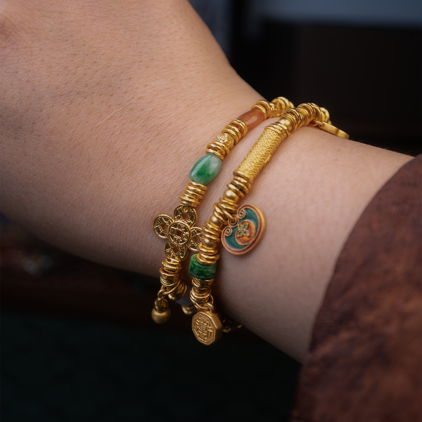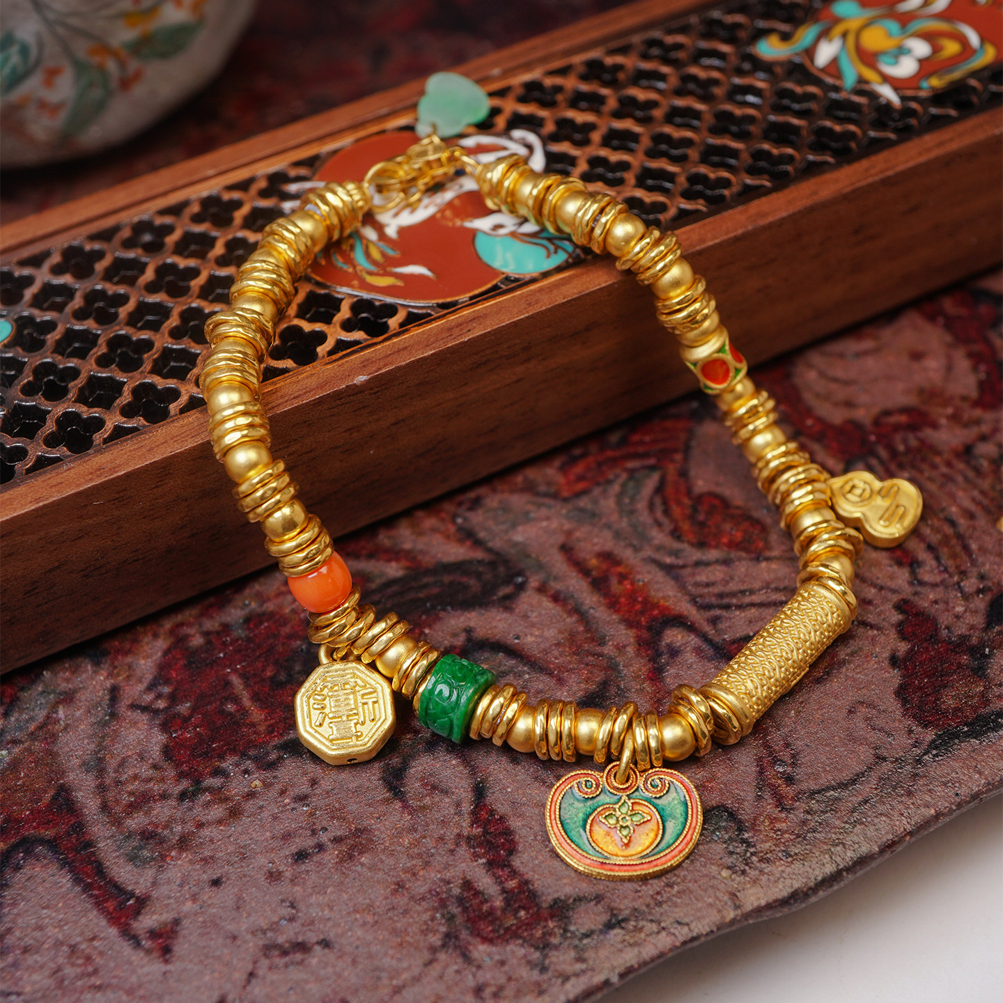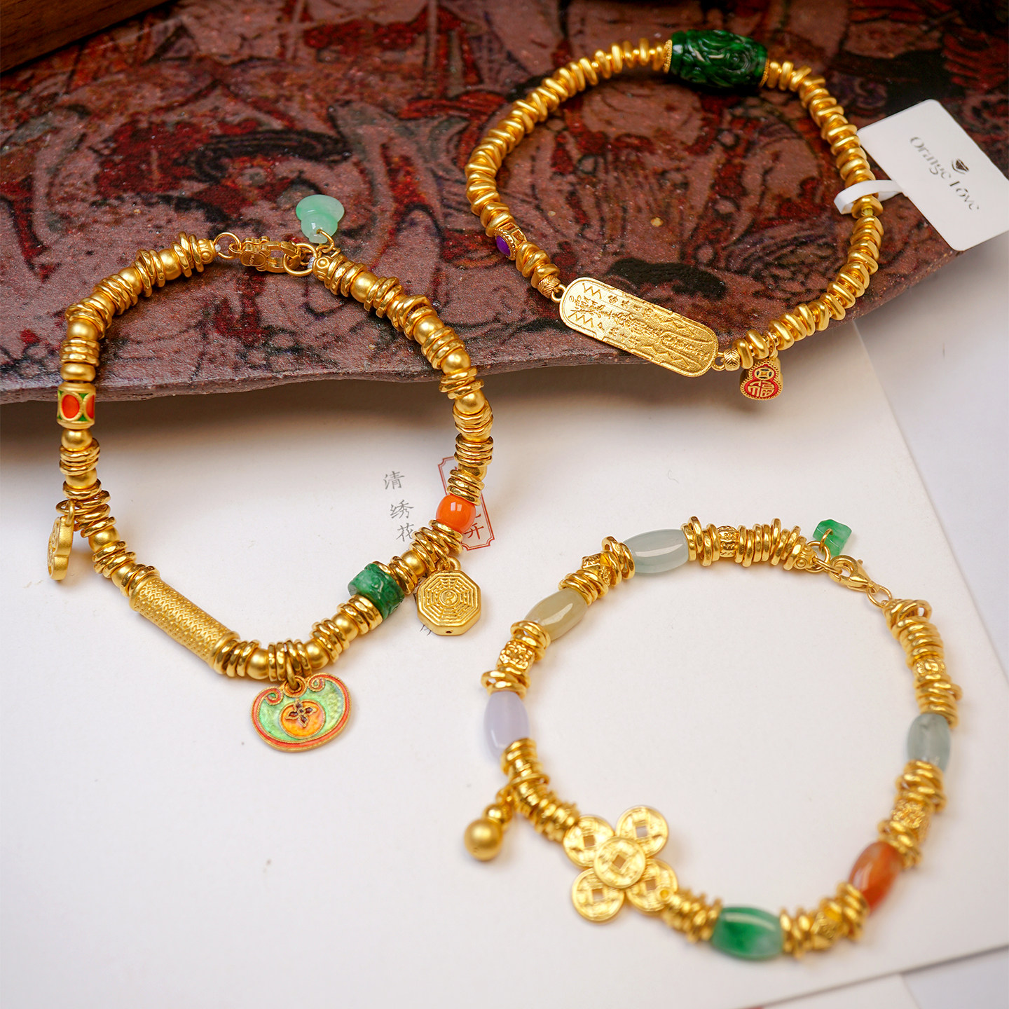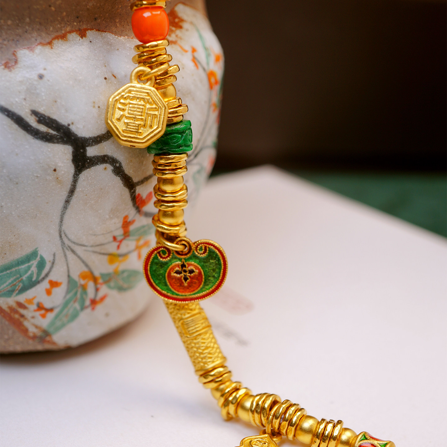 足金999盘缠手链太极八卦守护坠事事如意福禄吉祥天然缅翡点缀