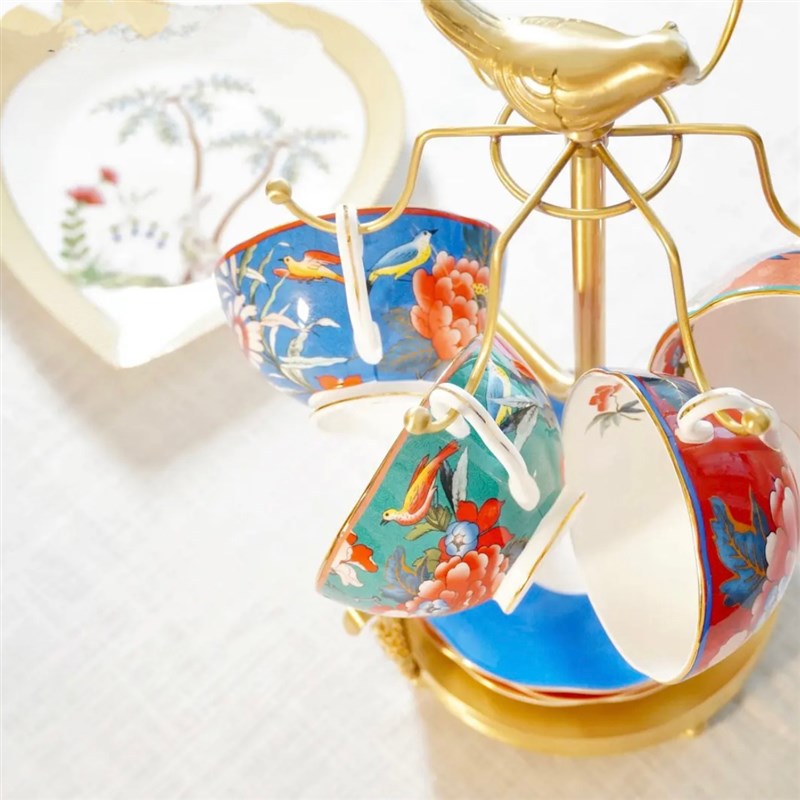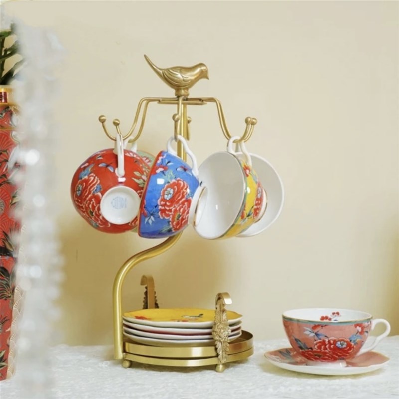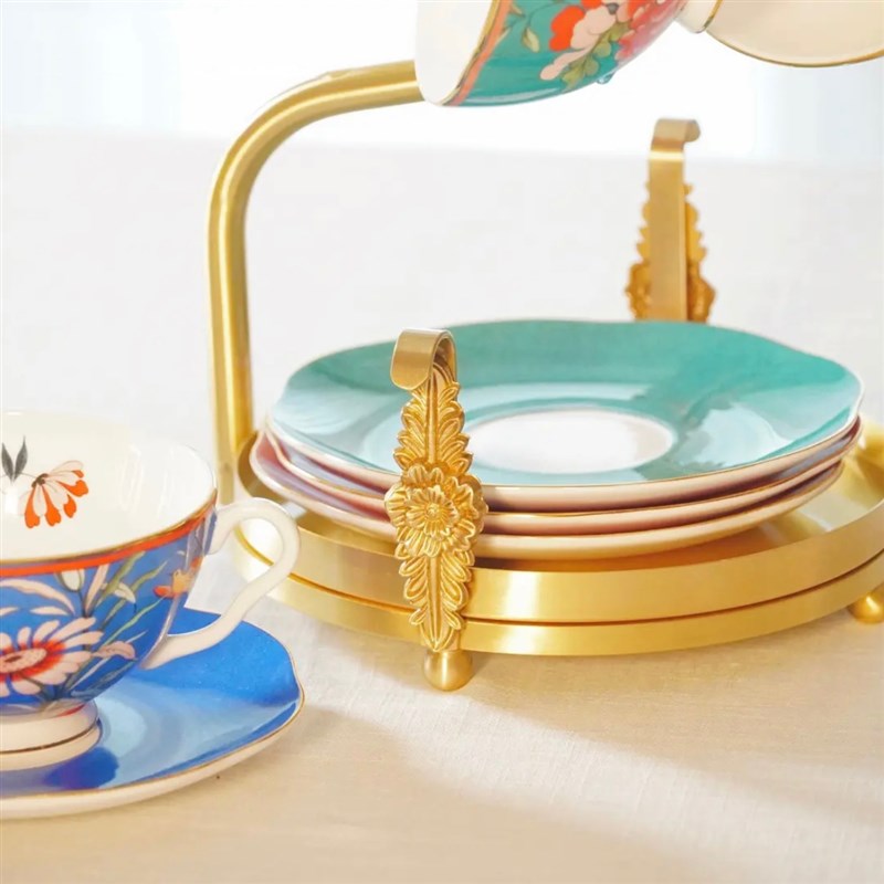 氛围家居轻d奢黄铜咖啡杯碟收纳水杯杯子架家用客厅餐桌杯碟置物