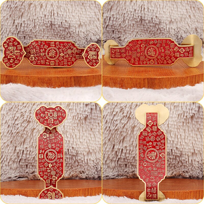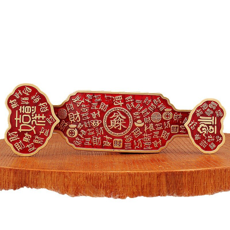 红色黄铜实心铜如意摆件财福如意家居装饰品办公室工艺品创意礼品