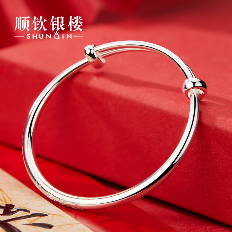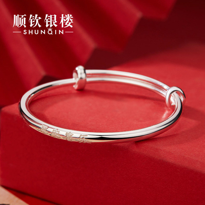 当前位置:首页>商品详情>顺钦银楼S999足银平安喜乐宝宝镯推拉款宝宝满月百天吉祥周岁礼