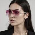 欧美复古金属朋克风单梁蛤蟆镜女潮圆脸显瘦字母太阳眼镜嘻哈墨镜