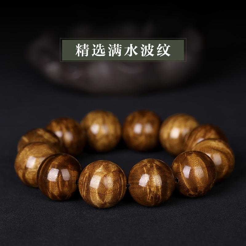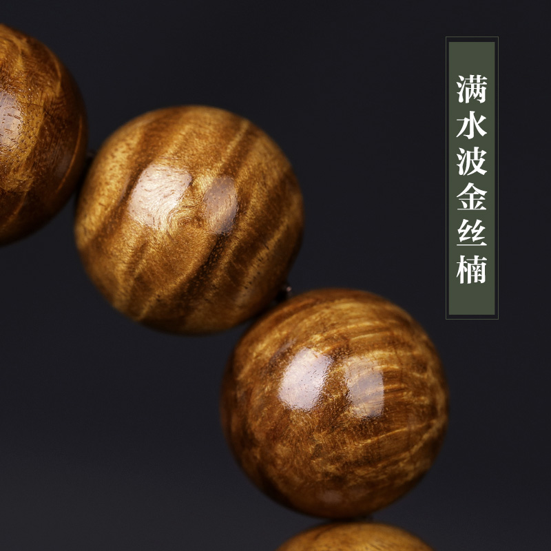 收藏级孤品 满水波纹金丝楠手串男士款小叶桢楠木佛珠女文玩手链