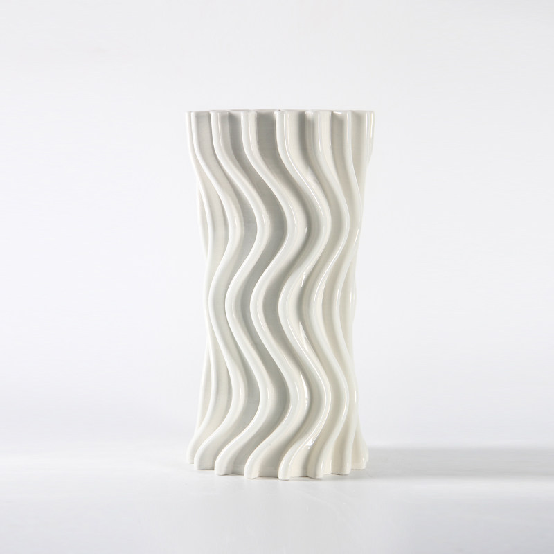 现代简约几何水波纹白色旋转陶瓷花瓶摆件样板间客厅玄关餐厅装饰
