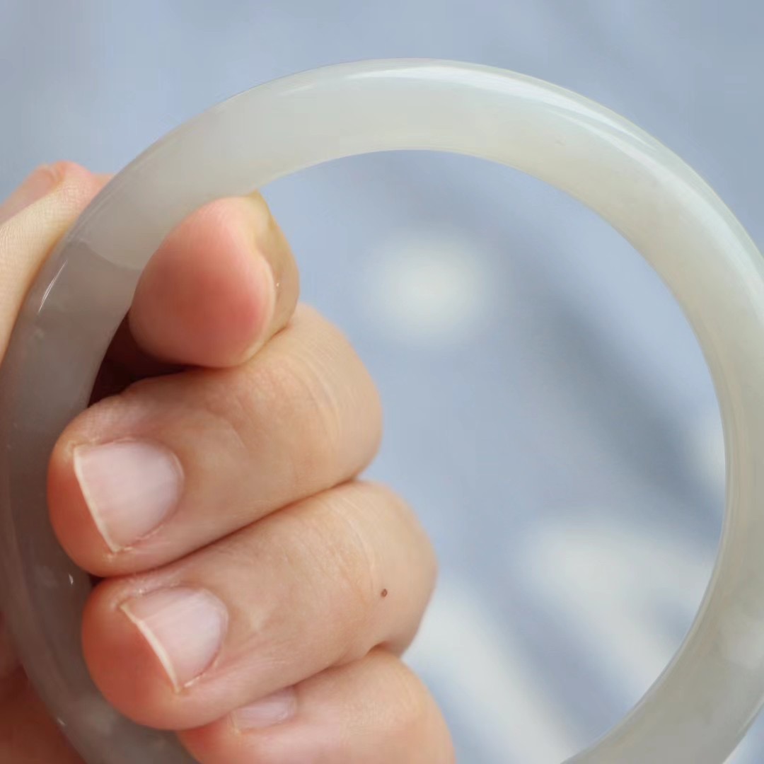 保真天然和田玉手镯55圈口证书编号5284287和田玉淡紫色烟灰色
