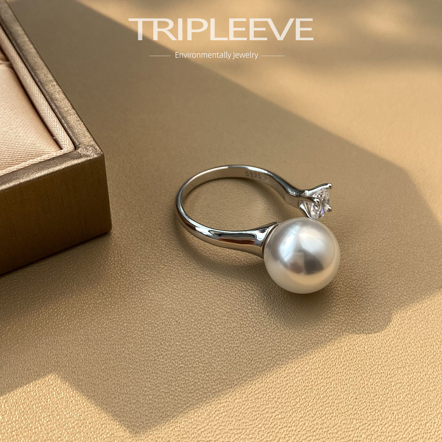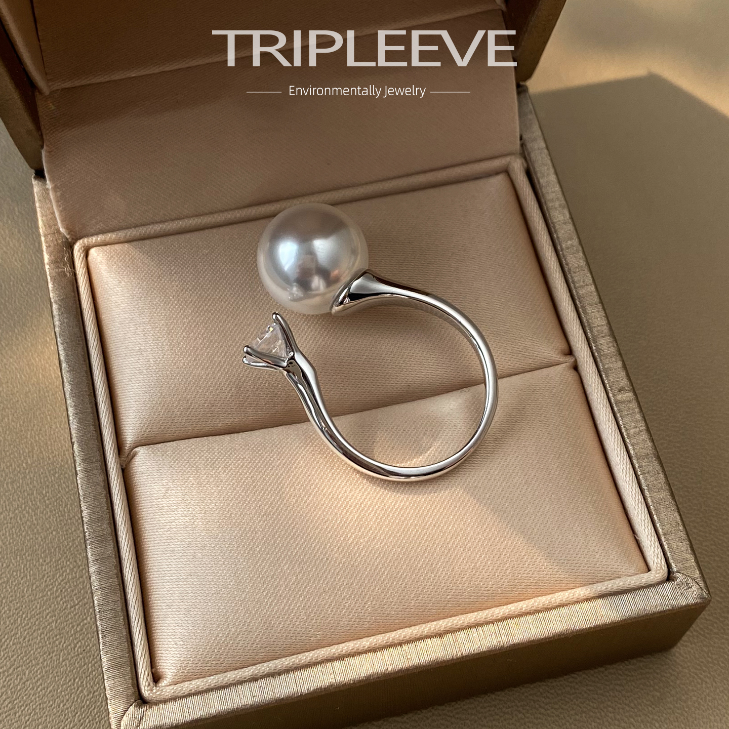 极简设计款戴妃款高碳钻珍珠戒指精工s925纯银小众轻奢开口可调节
