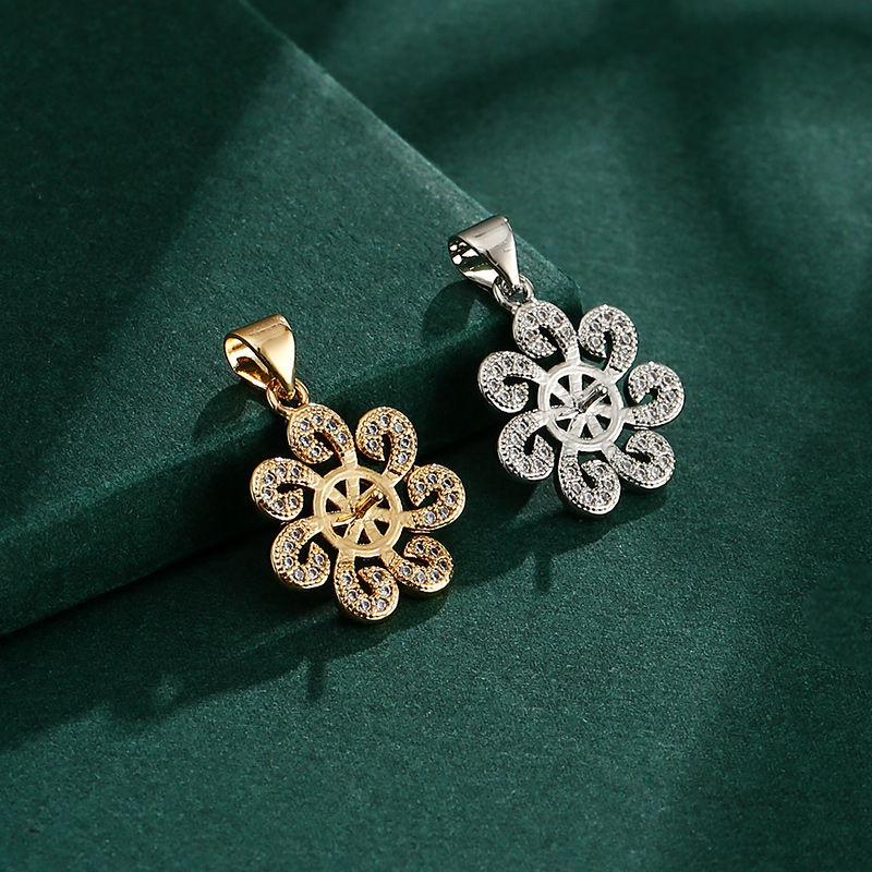 日韩简约珍珠吊坠扣头diy配件镶嵌蜜蜡琥珀翡翠珠18K金吊坠空托女