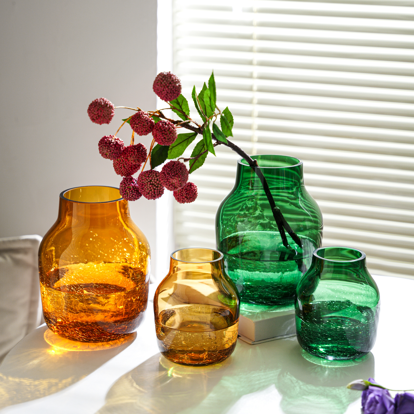 简约复古绿色玻璃花瓶家居装饰摆件客厅书房艺术品