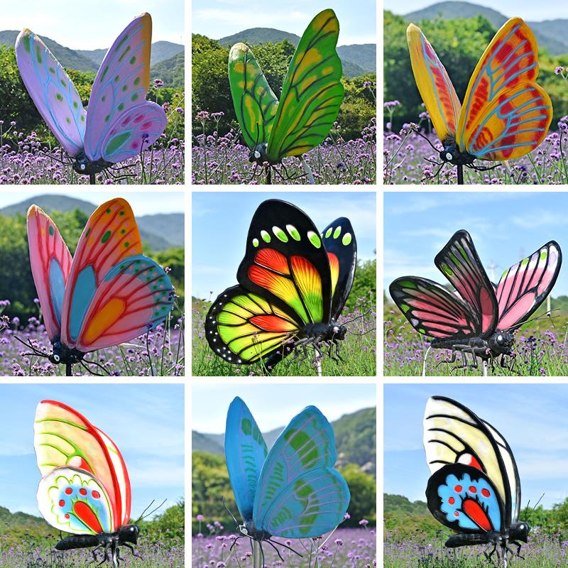 户外彷真蝴蝶雕塑动物玻璃纤维摆件庭院花海草坪绿化园林景观装饰