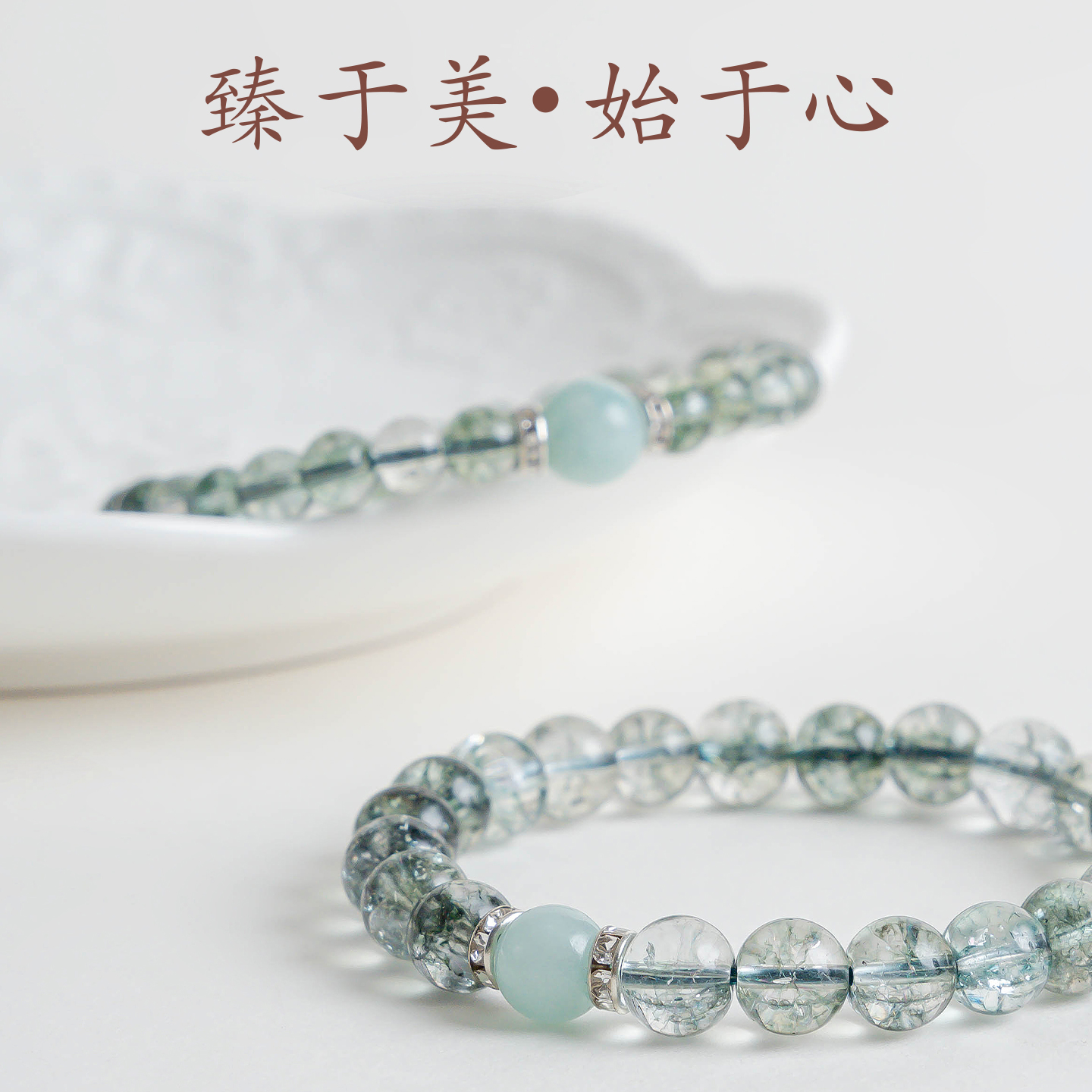 五台山原创设计绿幽灵水晶手串精致幸运精选缅甸玉新中式手链情侣