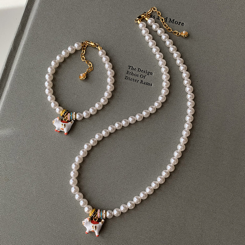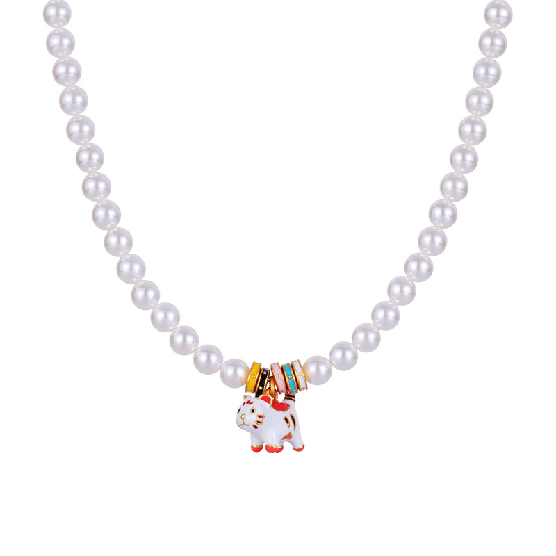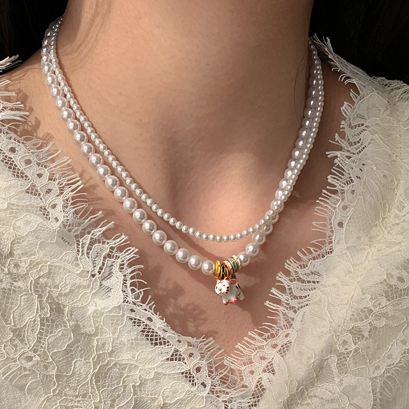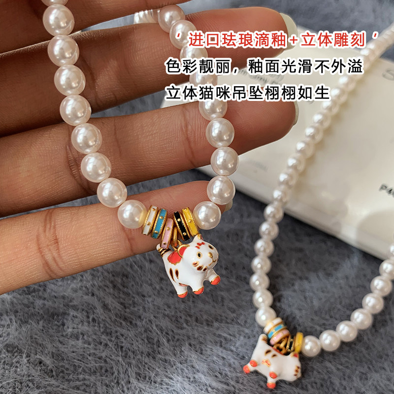 小猫咪珍珠项链女款轻奢小众高级感叠戴新中式秋冬长款锁骨毛衣链
