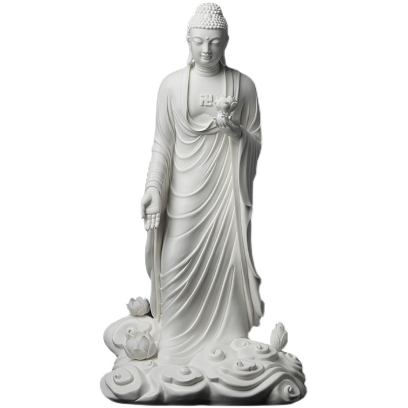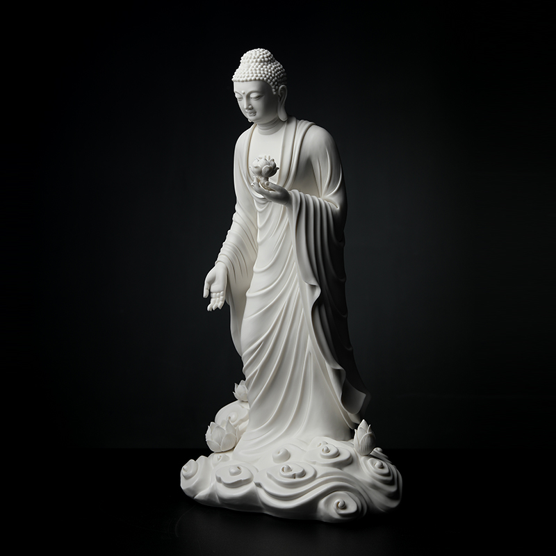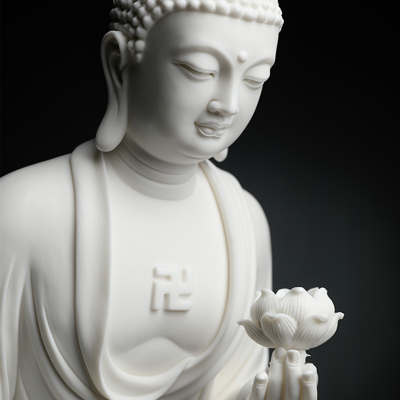 戴玉堂德化白瓷《莲池阿弥陀佛》林建平大师手签限量陶瓷佛像摆件