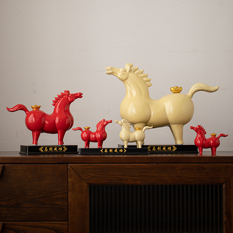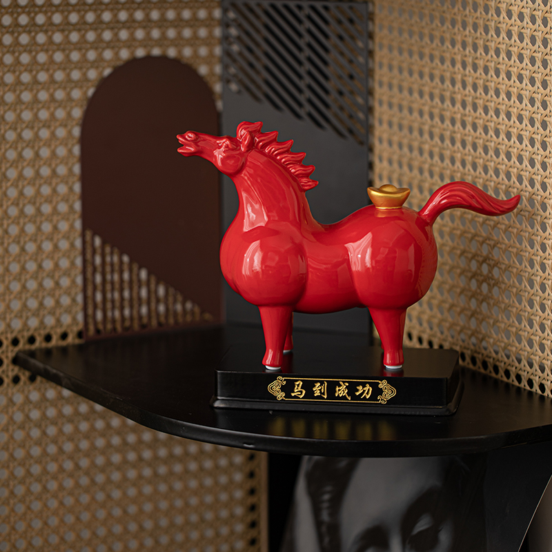 马到成功中式陶瓷生肖马办公桌玄关摆件马年生肖吉祥物春节礼品
