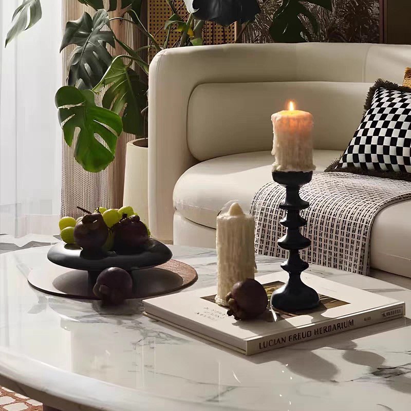 中古侘寂风样板房餐桌茶几花z艺果盘烛台蜡烛香薰组合装饰摆件