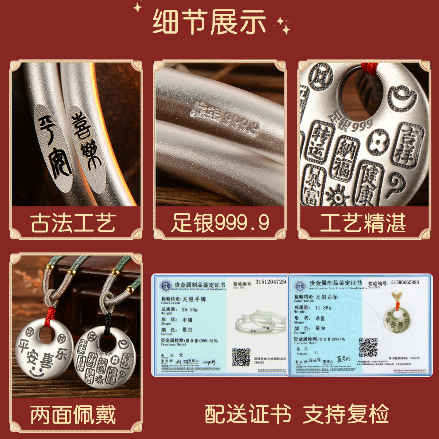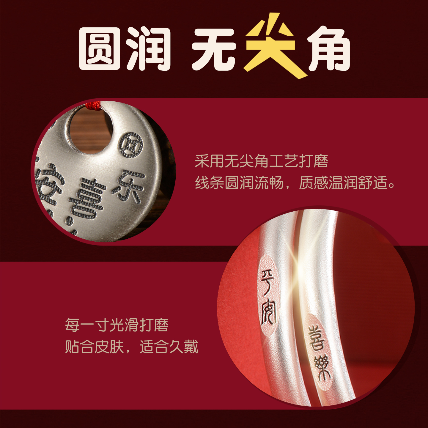 爱贝贝古法实心宝宝银手镯长命锁足银三件套婴儿银锁小孩平安锁