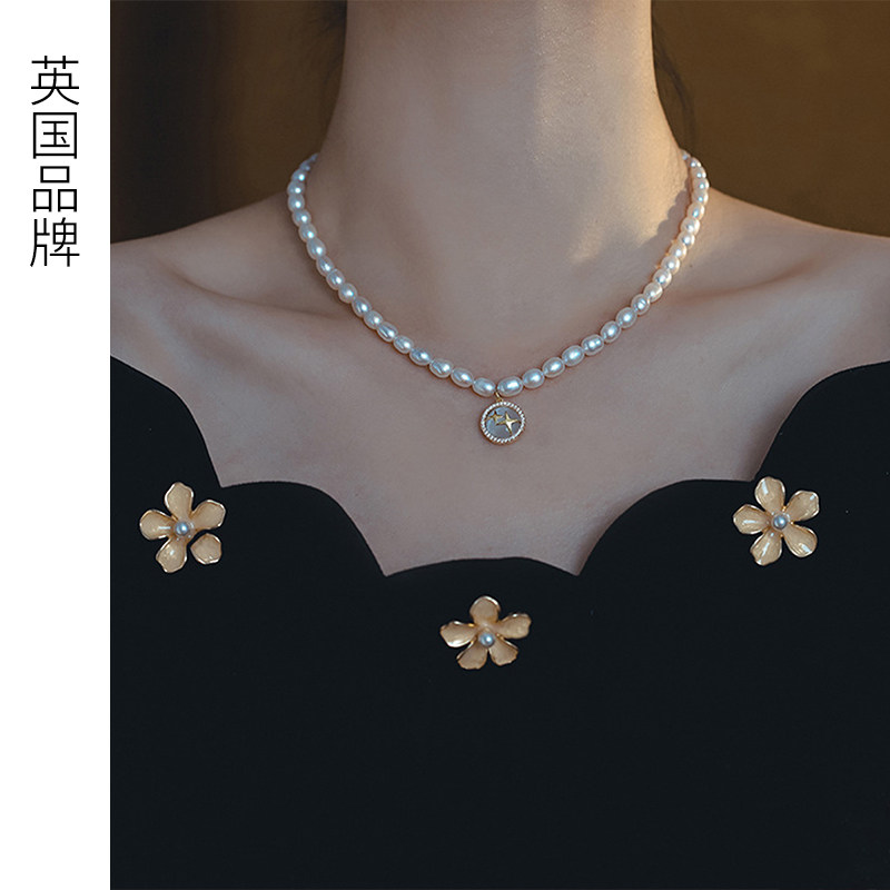 【自营】英国DB星芒珍珠项链女法式气质天然淡水珍珠锁骨链礼物