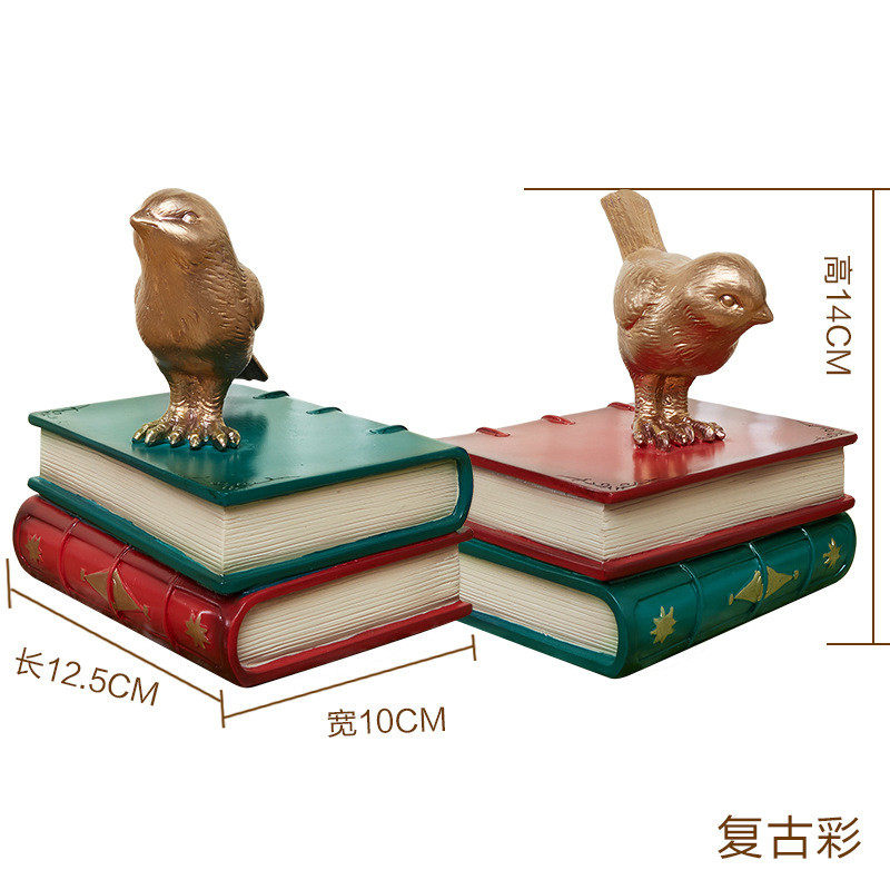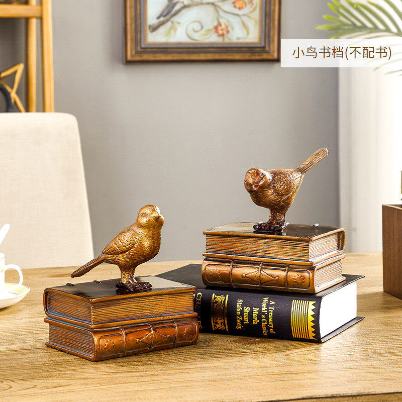 美式仿真书柜装饰书书房摆件复古小鸟创意动物书挡书考树脂装饰品