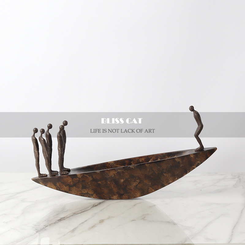 新中式软装平衡金属雕塑摆件样板房售楼处民宿玄关U书柜艺术装饰