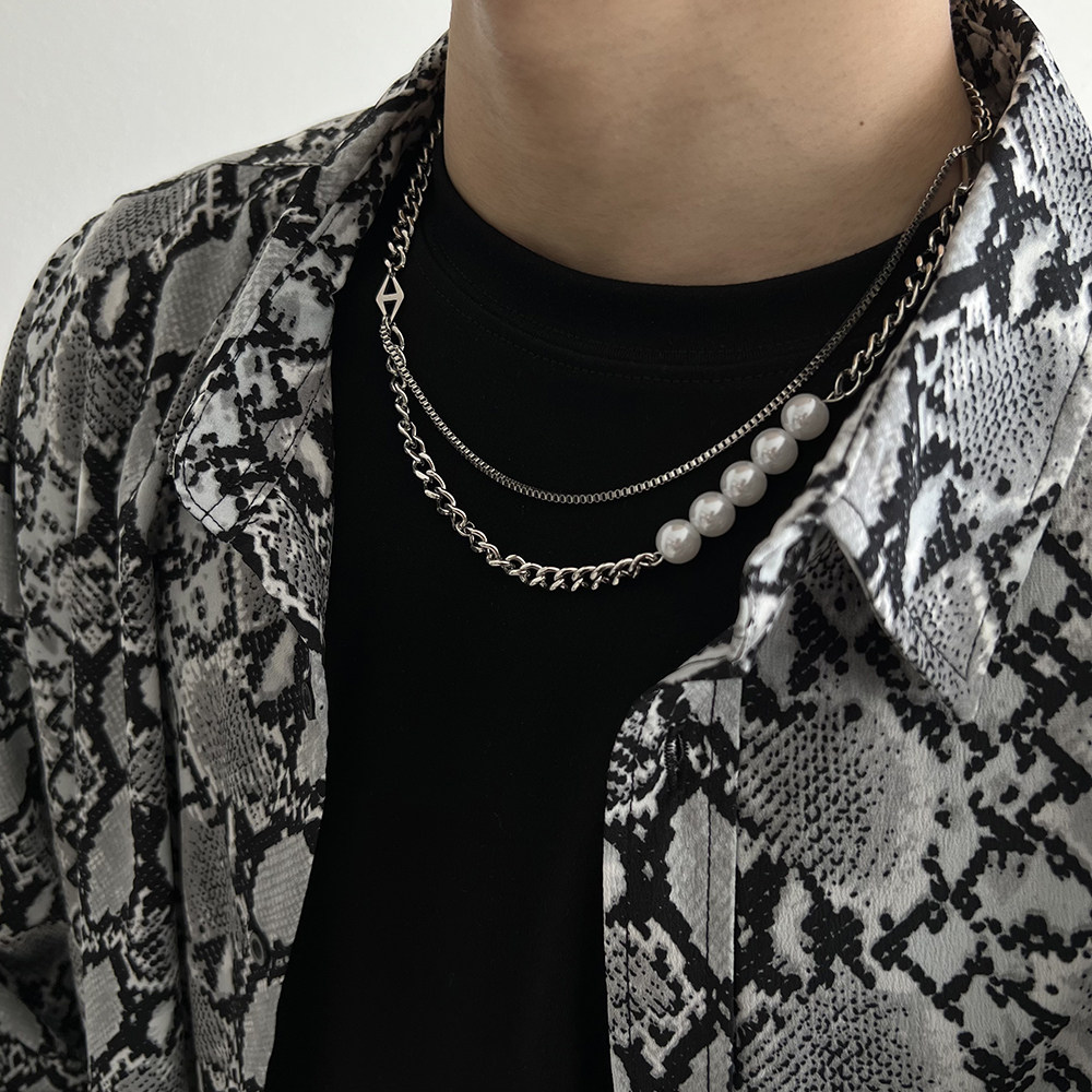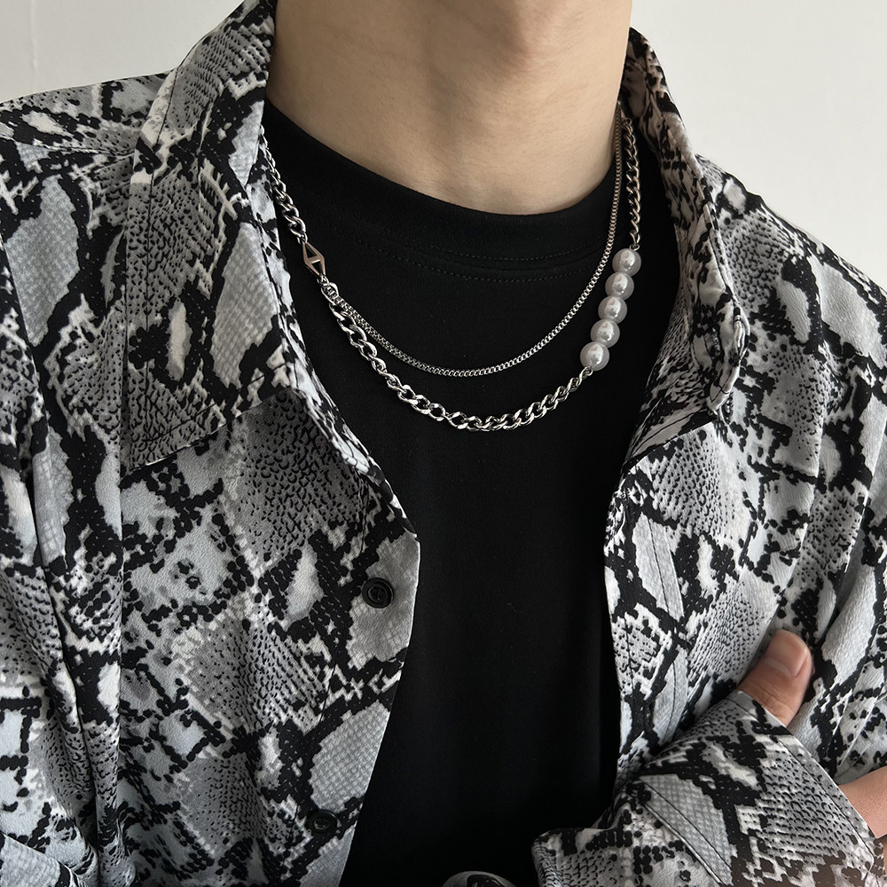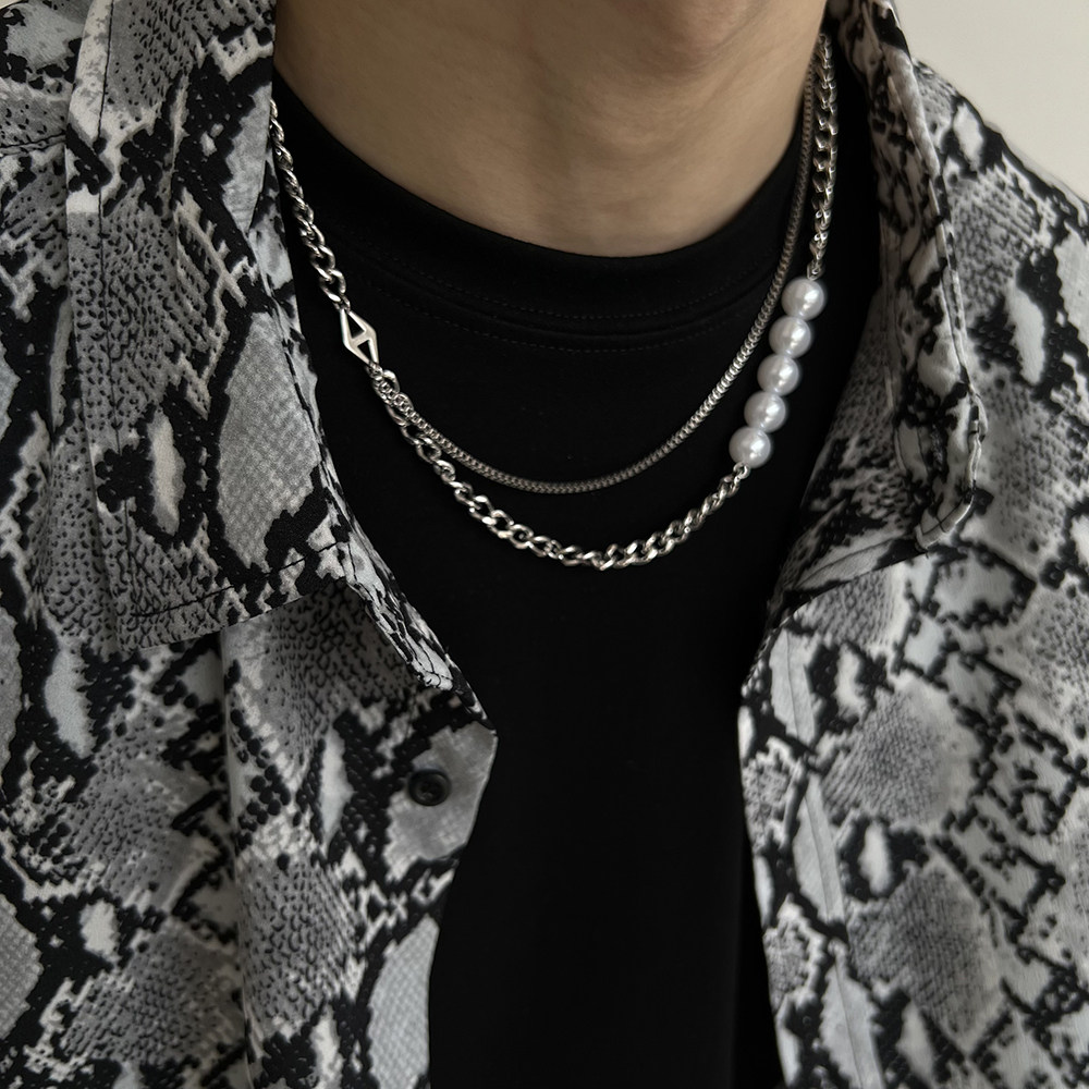2022新款简约双层链条男潮拼接珍珠项链ins小众设计嘻哈锁骨链
