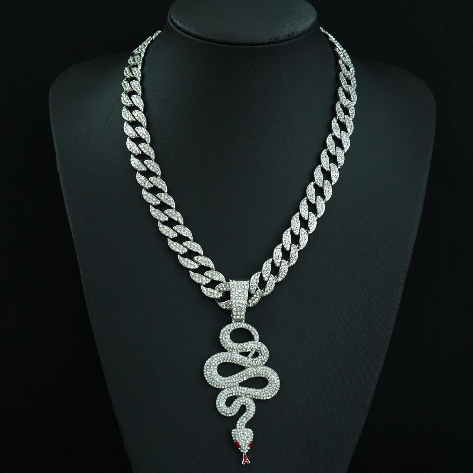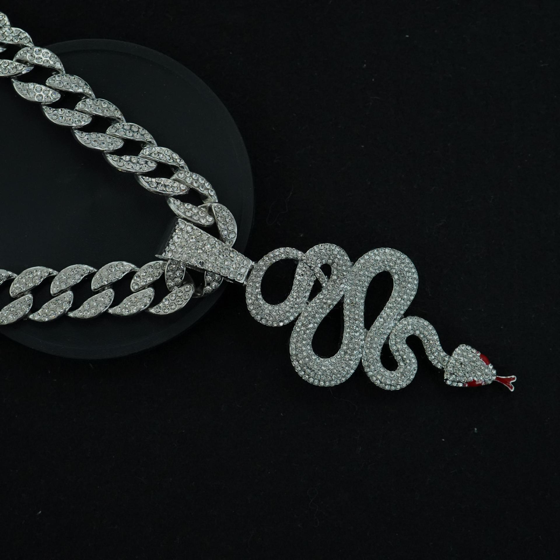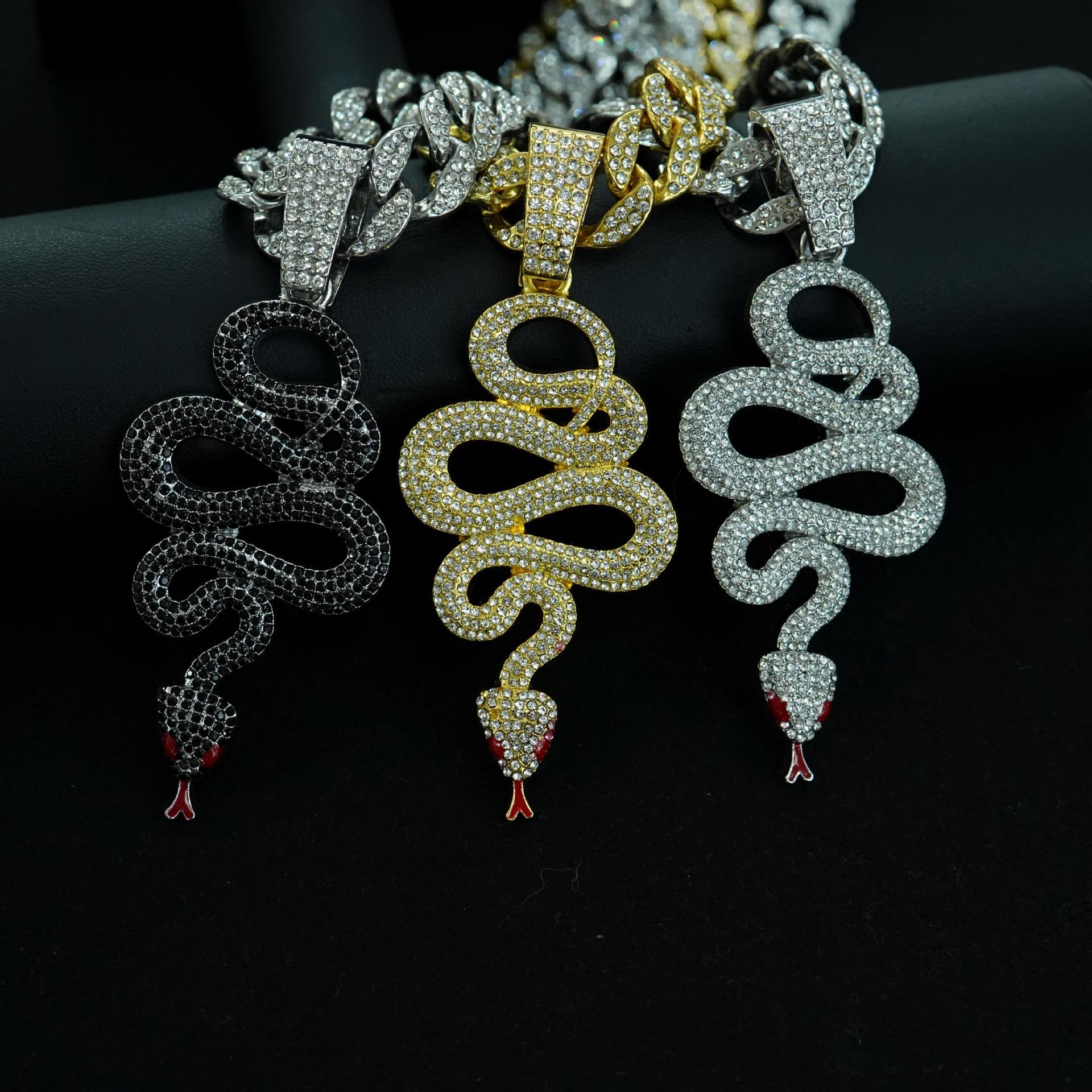 欧美嘻哈满钻2025年蛇生肖吊坠古巴项链男女炫酷镶钻灵蛇盘绕配饰