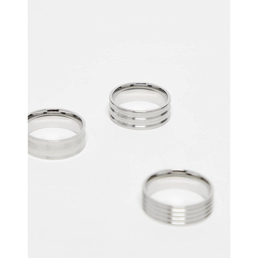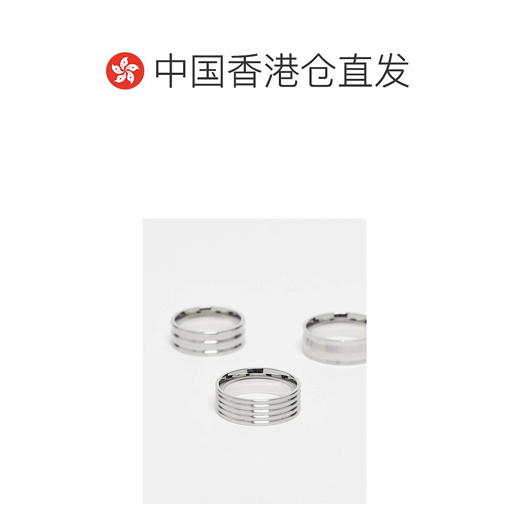 1h可退 香港直邮ASOS 男士 设计不锈钢压花带子磨毛银色色调戒指(