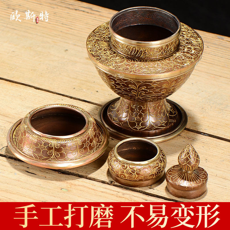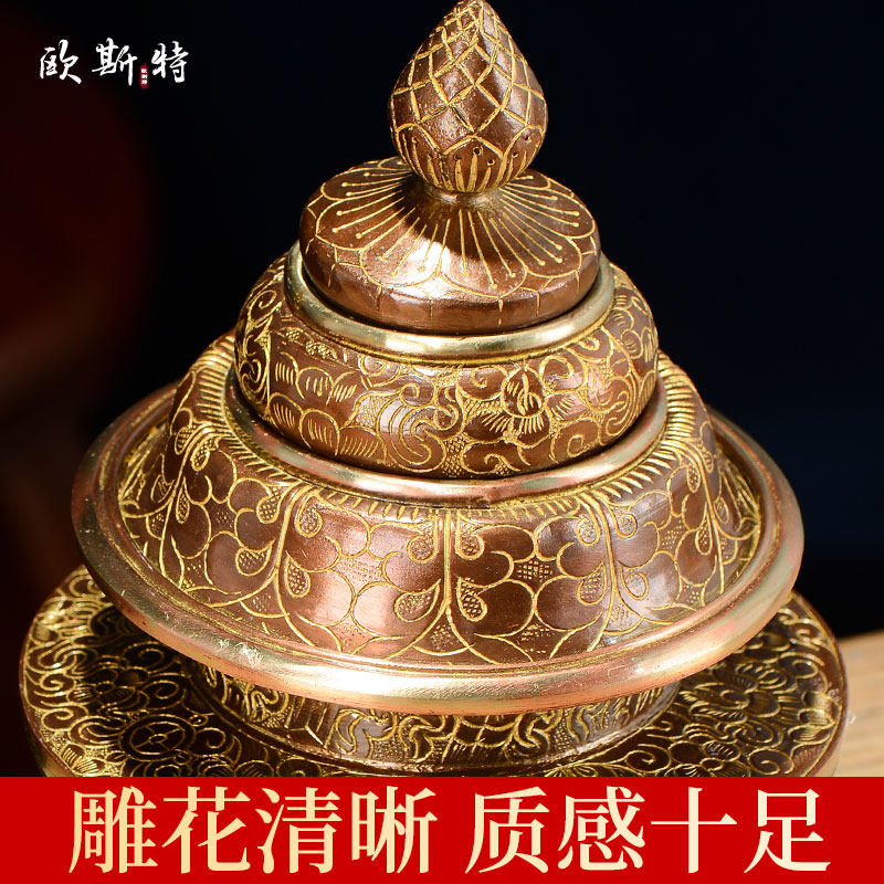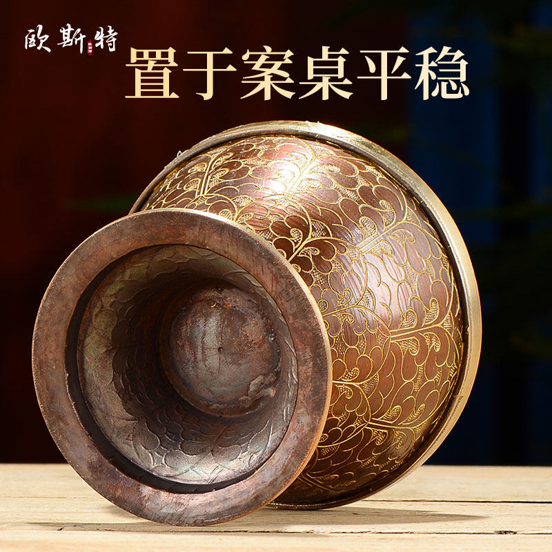 欧斯特 尼泊尔手工米盒 紫铜描金雕花用品修粮专用宝瓶居家米罐
