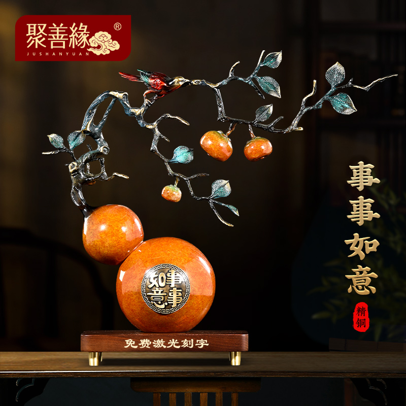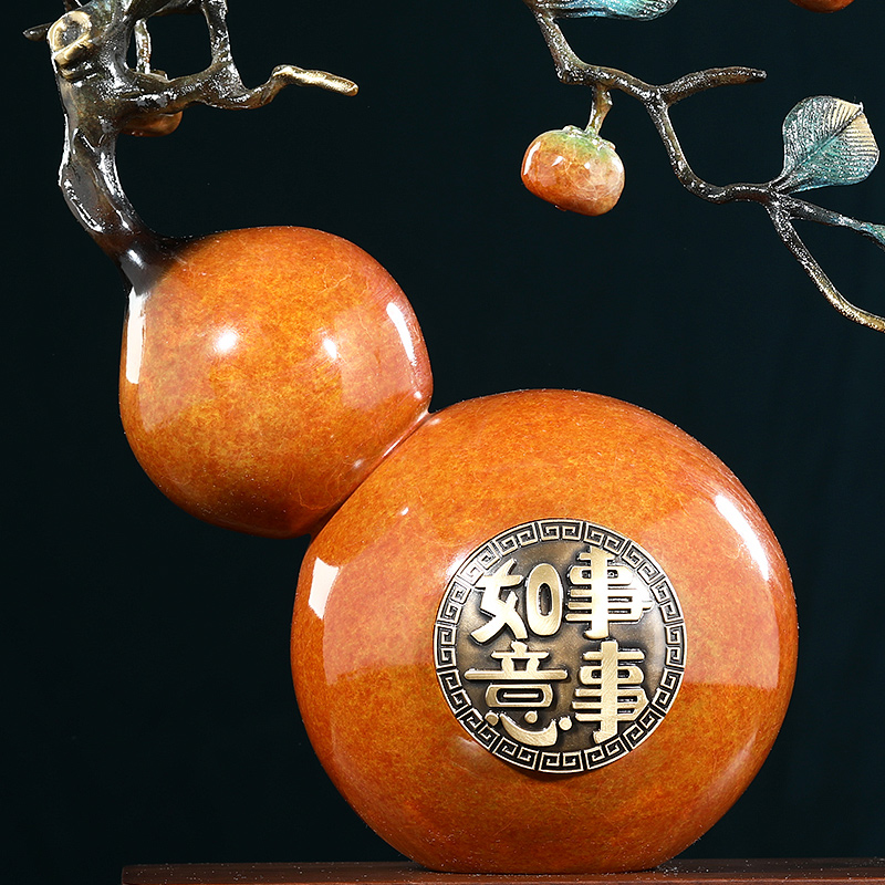 现货速发福禄招财铜葫芦摆件中式客厅入户玄关酒柜装饰品搬新家乔