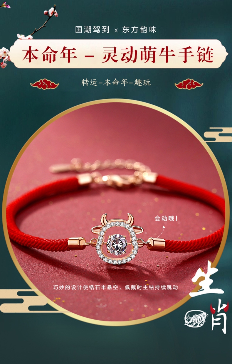 2021本命年新款红绳手链女纯银生肖网红手绳牛年礼物轻奢小众饰品