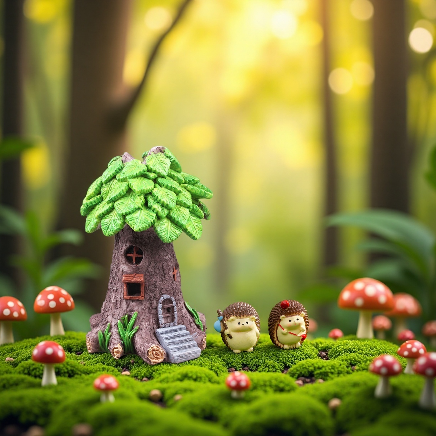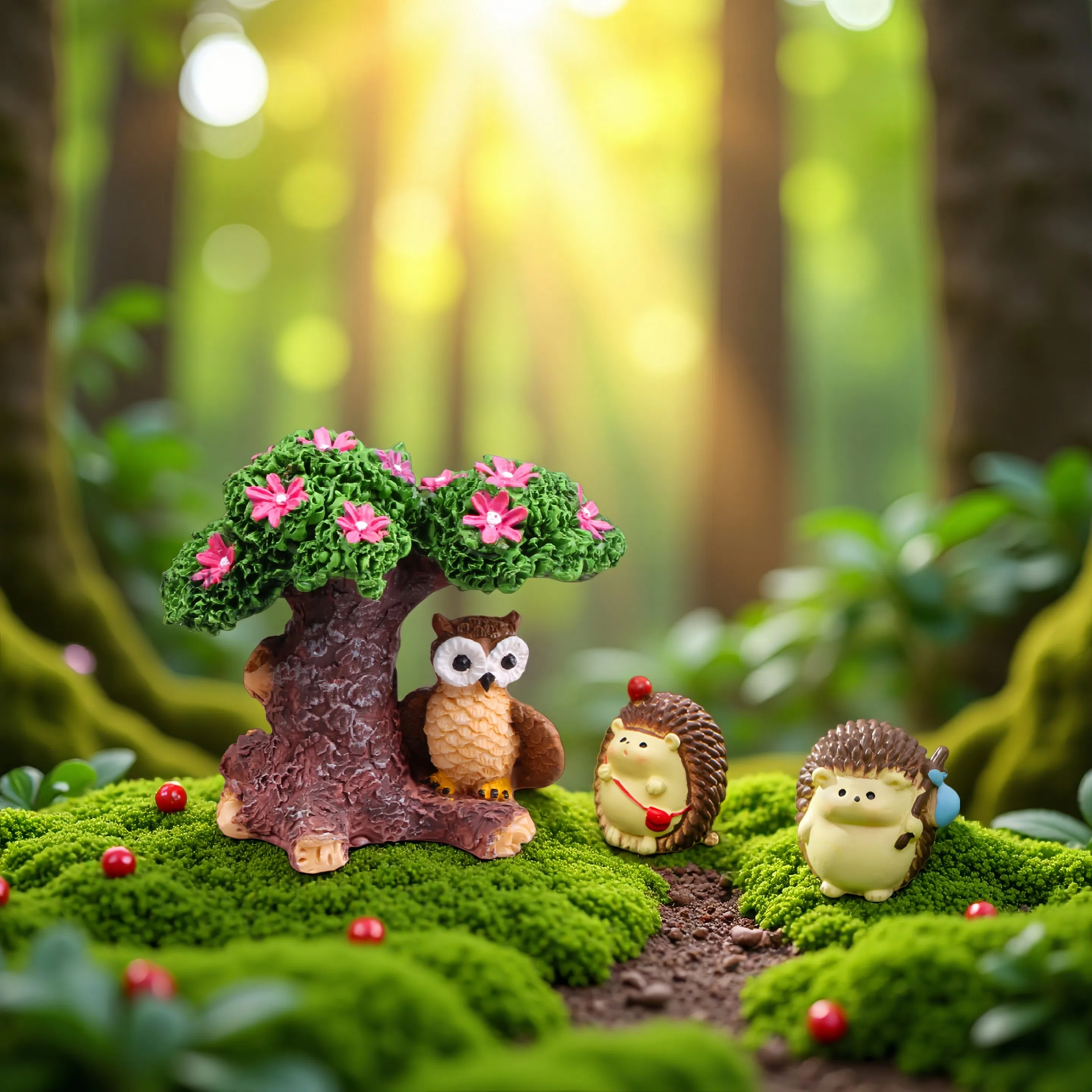 苔藓植物造景微景观森林木屋刺猬猫头鹰园艺DIY装饰品盆景小摆件