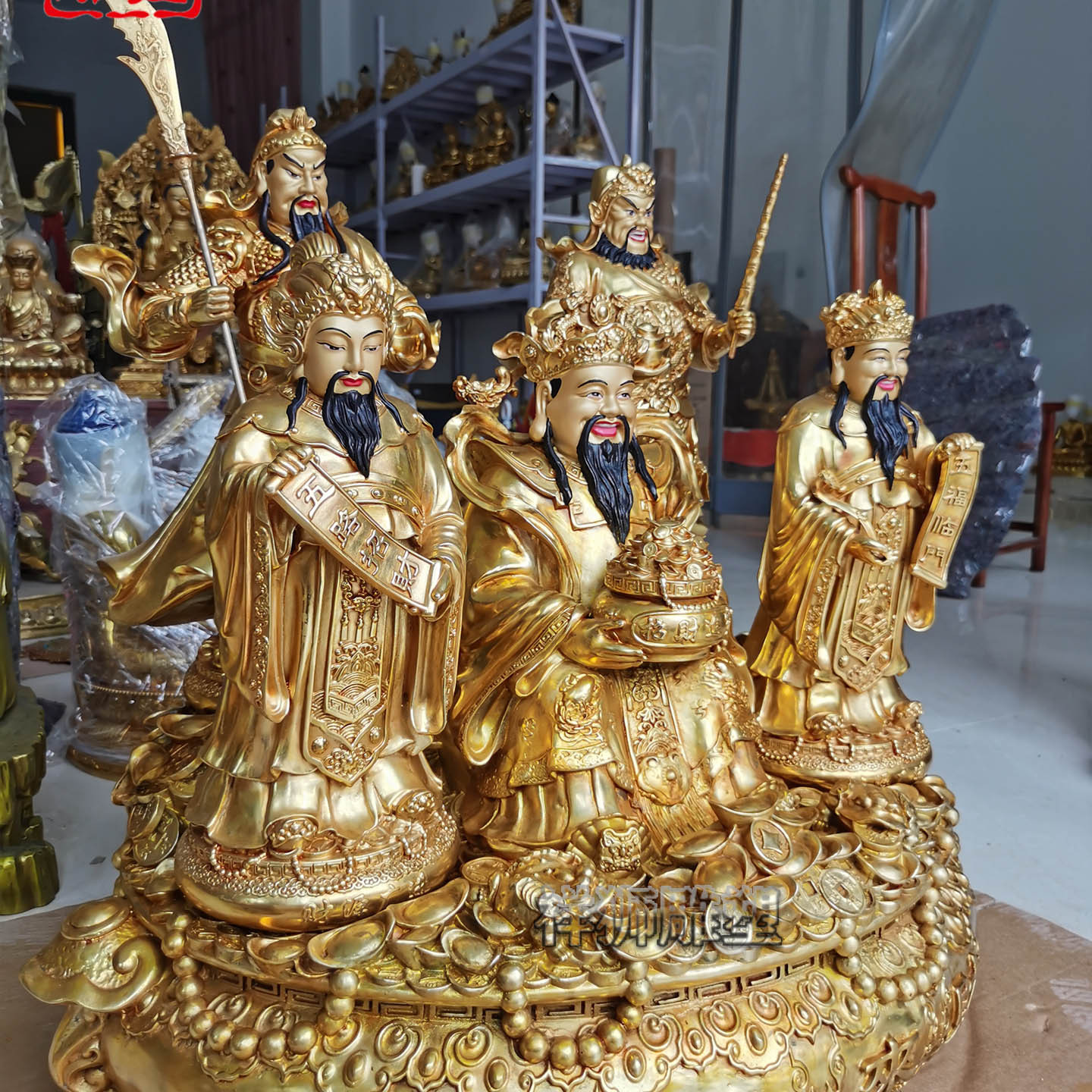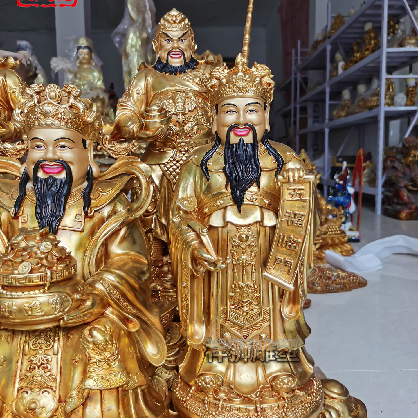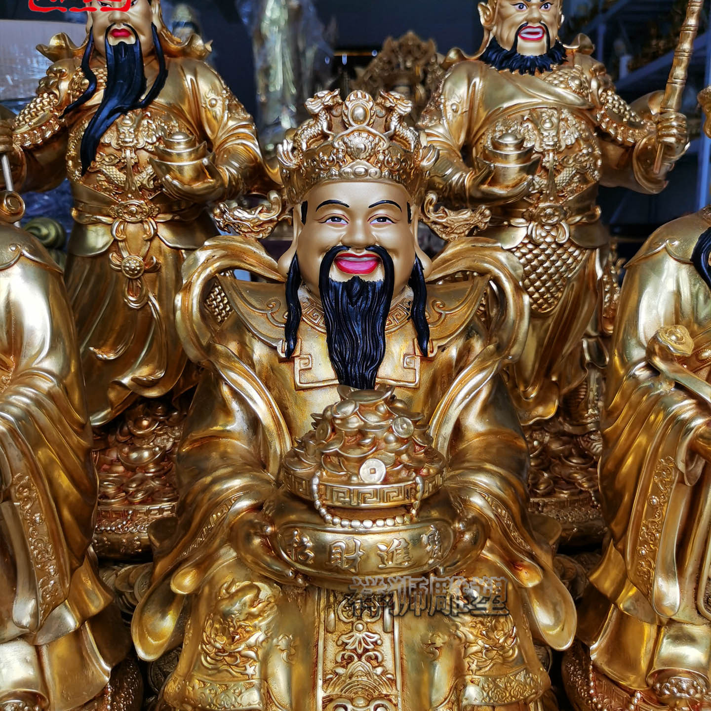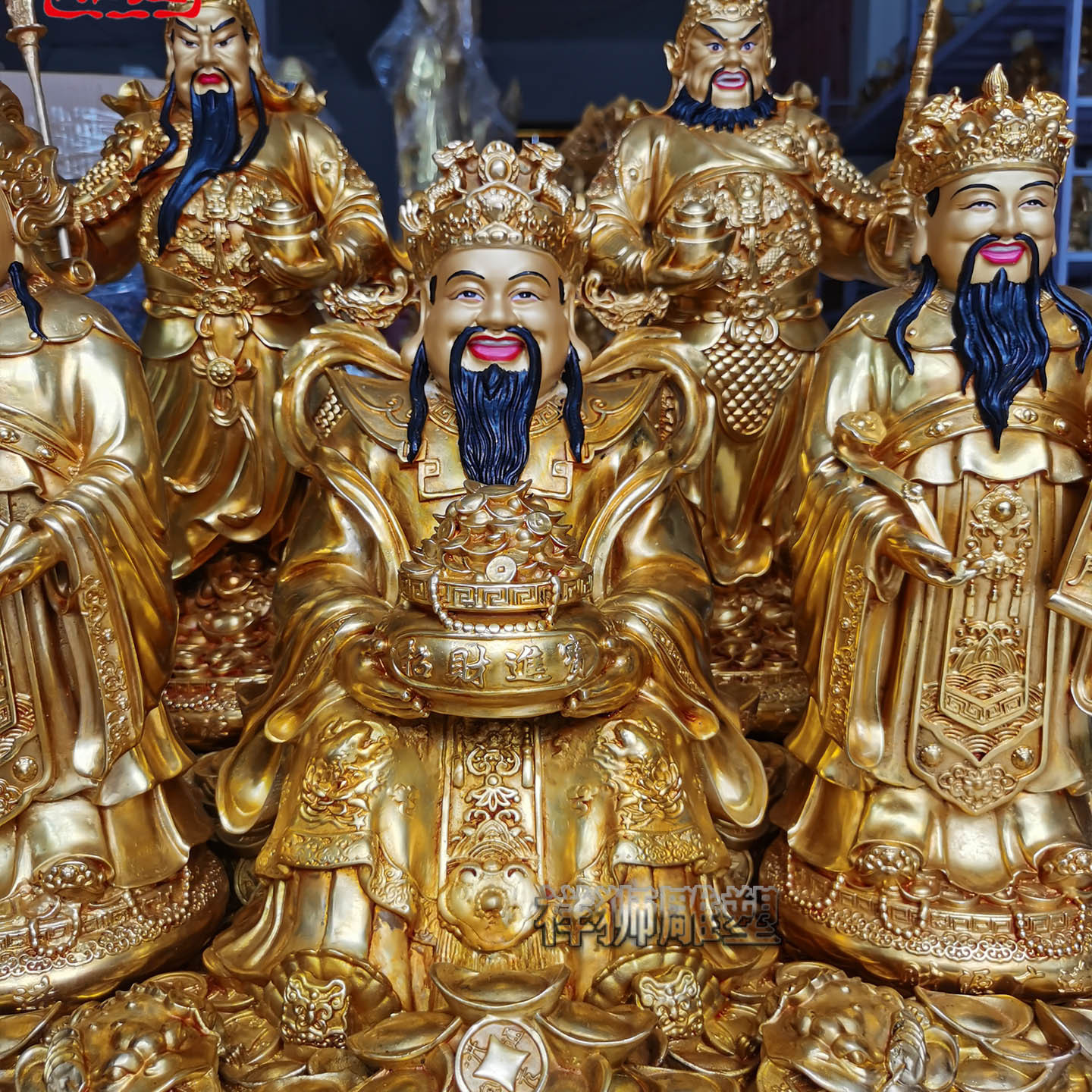铜佛像厂家纯黄铜铸造大型五路财神佛像寺庙供奉摆件定制祥狮雕塑