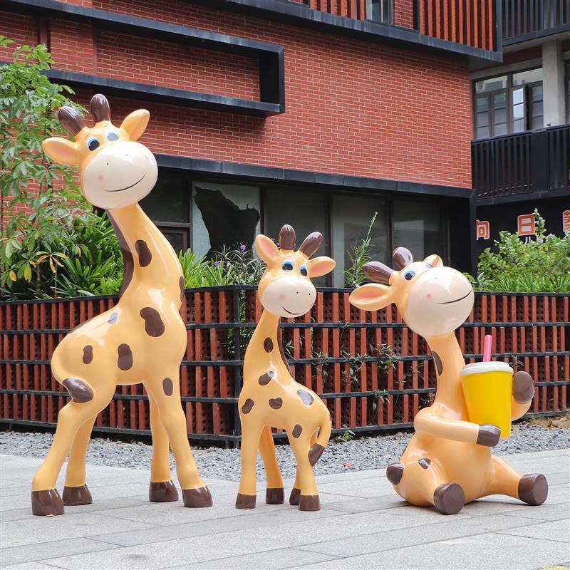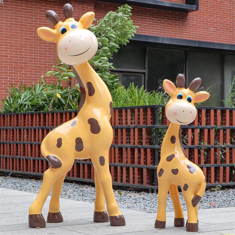 户外卡通动物长颈鹿相框打卡雕塑景区公园幼儿园网红动物小鹿摆件