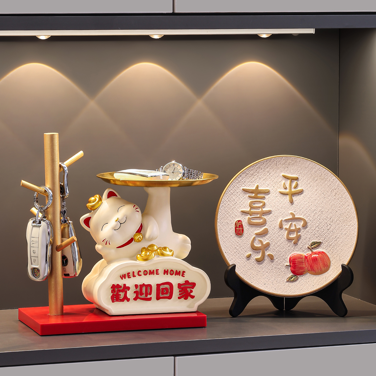 欢迎回家招财猫钥匙收纳玄关摆件乔迁布置装饰品搬家入宅新年礼物