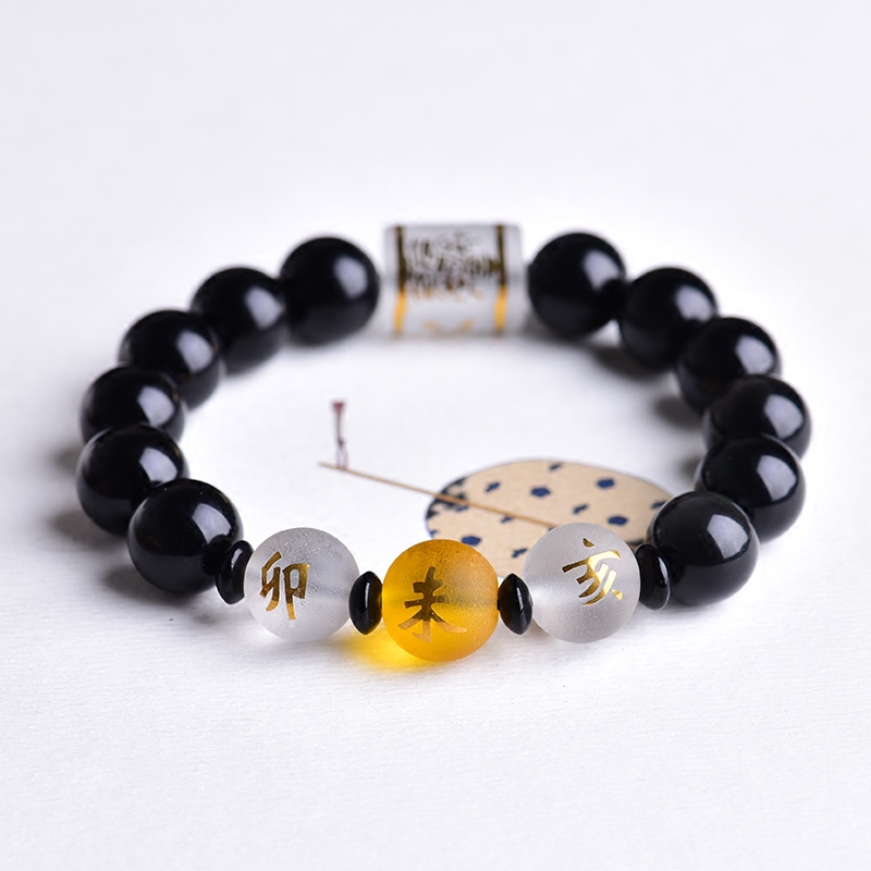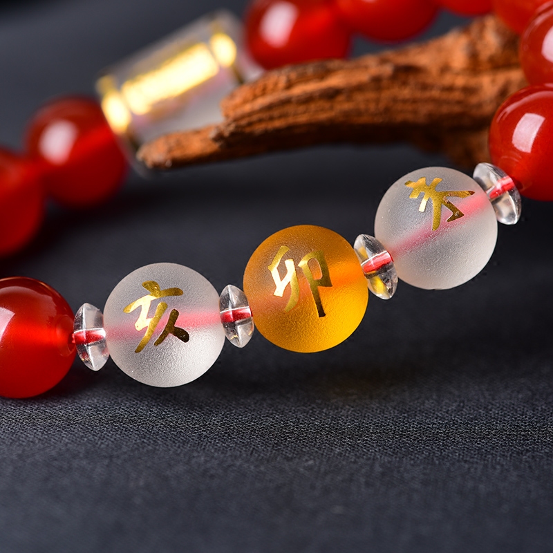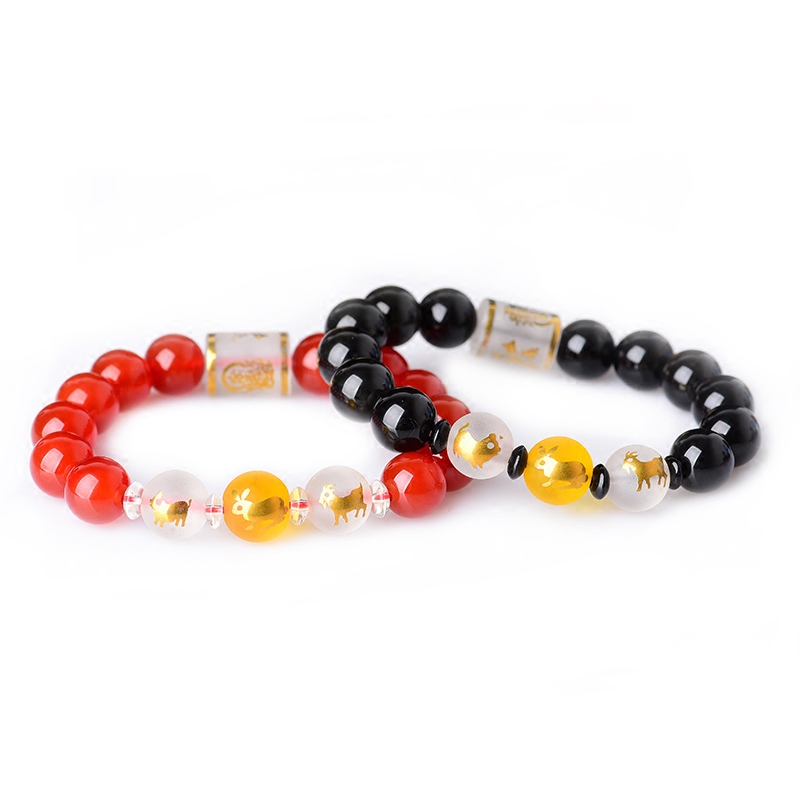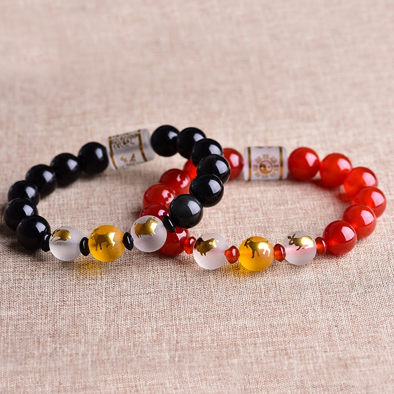 天然红玛瑙手链十二生肖猪兔羊三合黑曜石手串男女款转运珠护身符