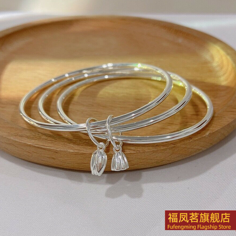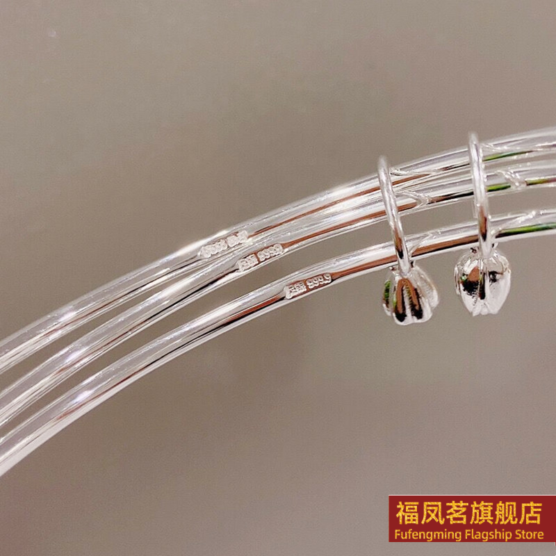 正生新款三生三世两世欢莲蓬莲花纯银手镯足银9999送女友生日礼物