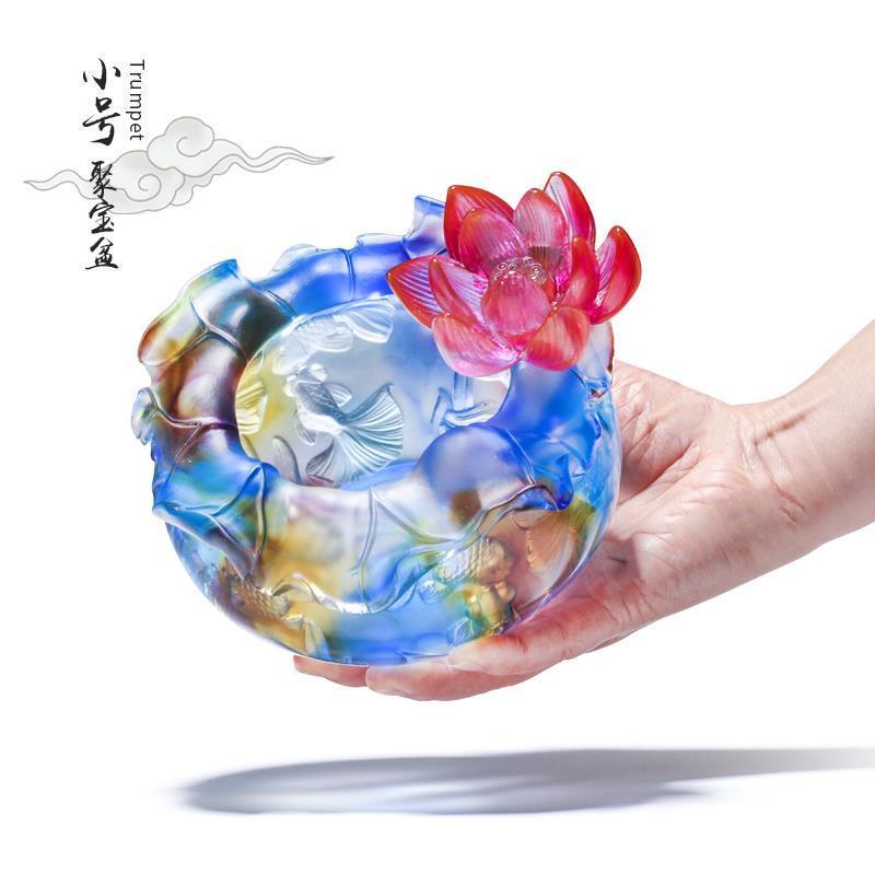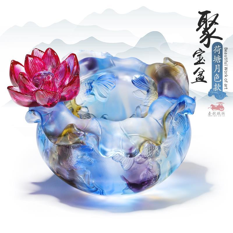 琉璃荷塘月色聚宝盆荷花鱼缸乔迁商务工艺品摆件门厅钥匙储物罐