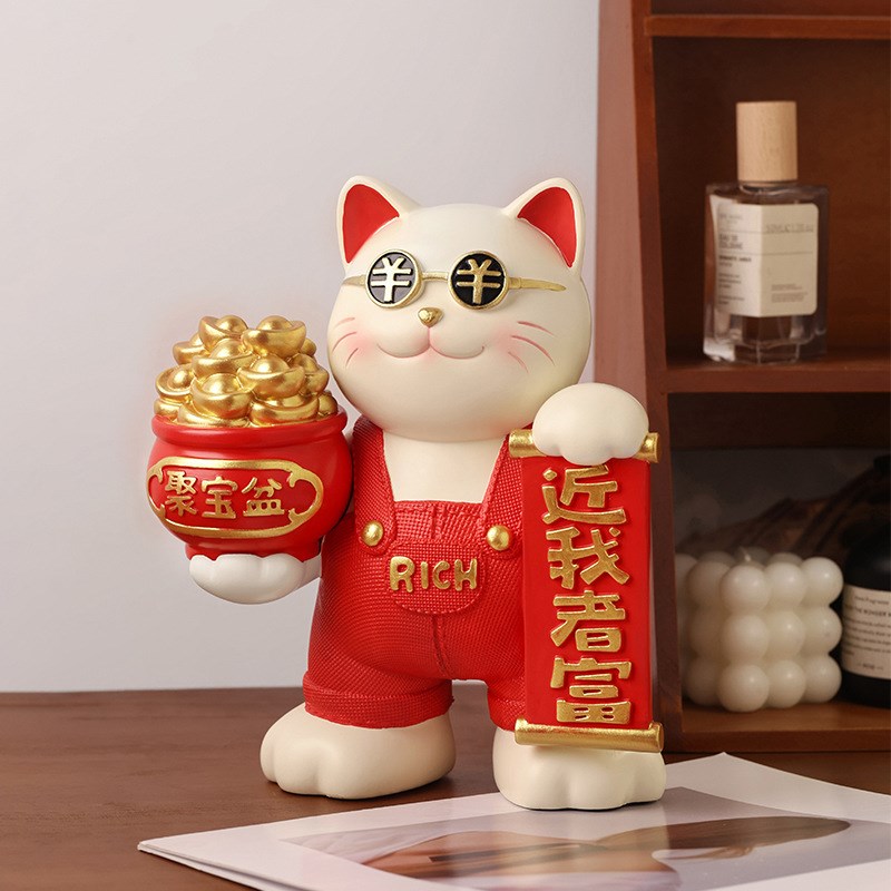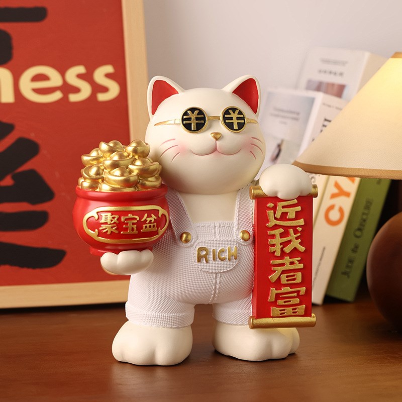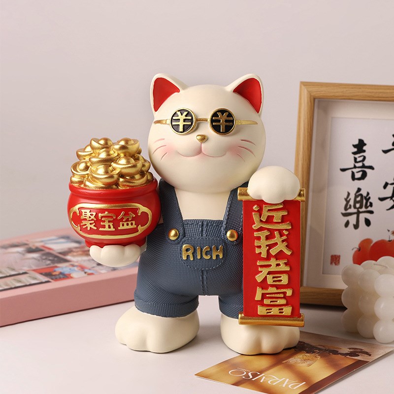 潮玩招财猫摆件客厅玄q关酒柜电视柜装饰品乔迁新居开业创意礼物