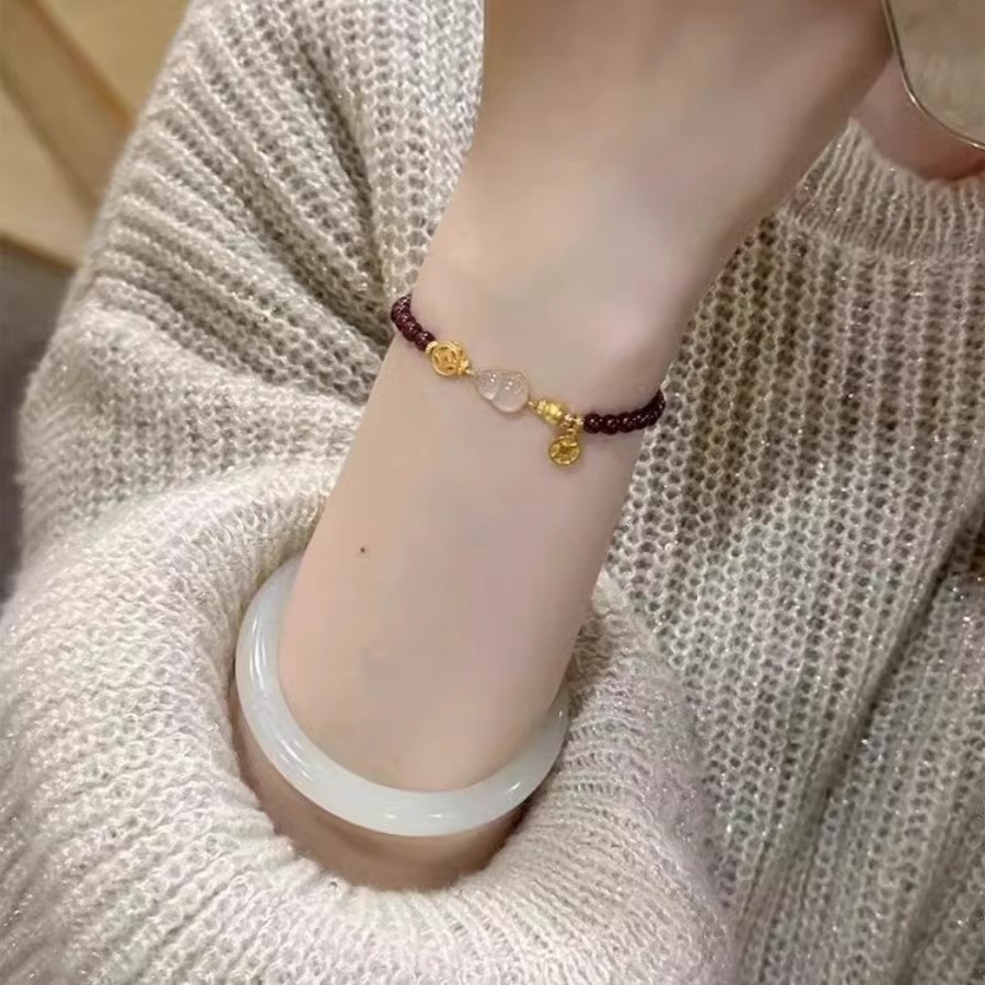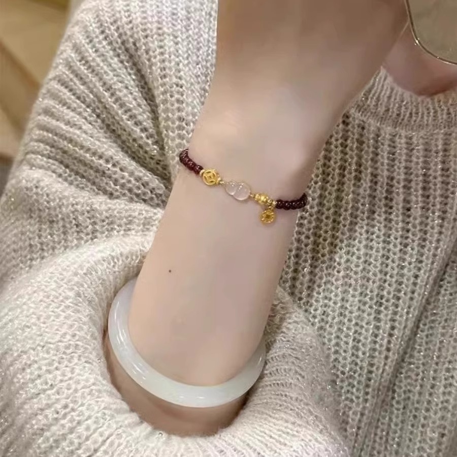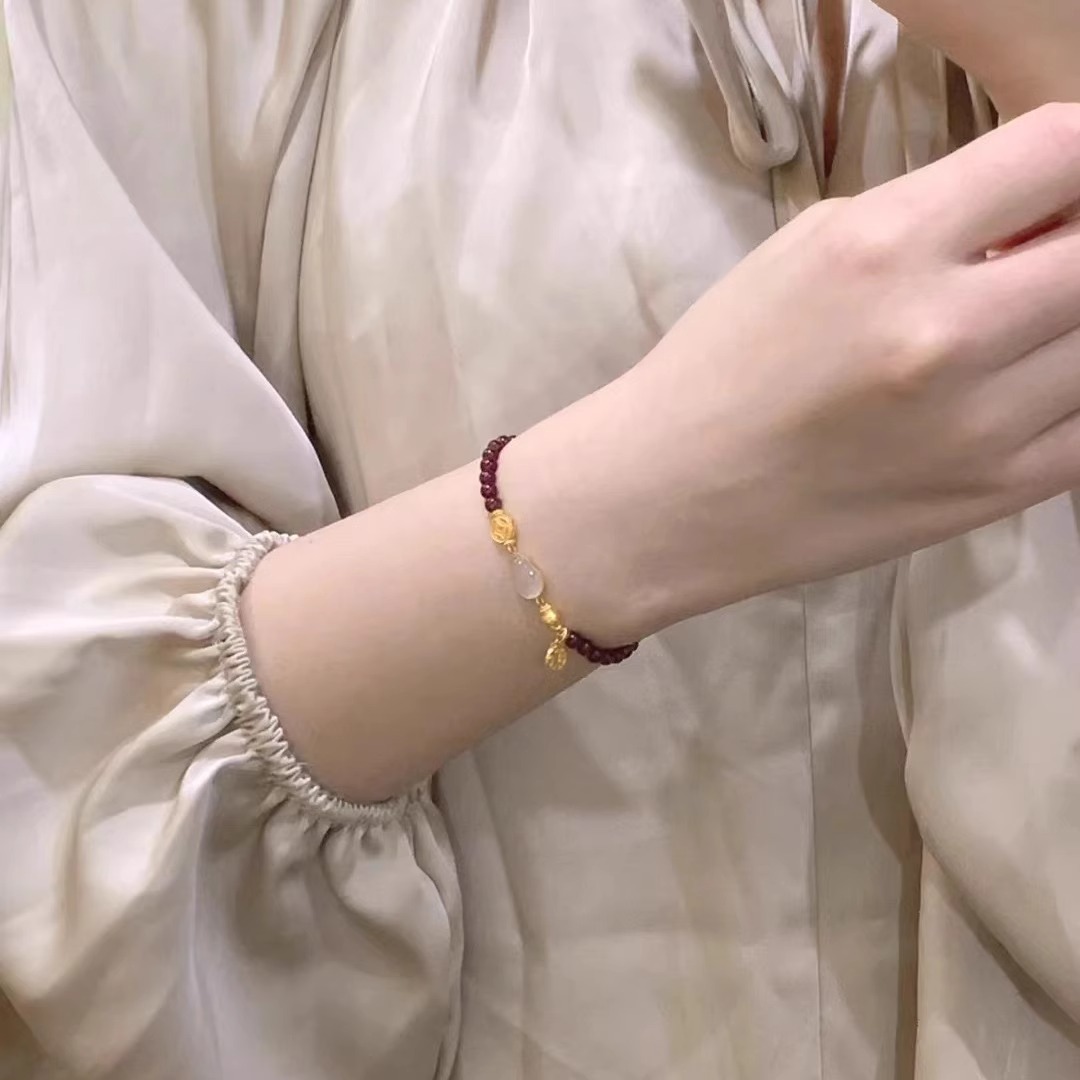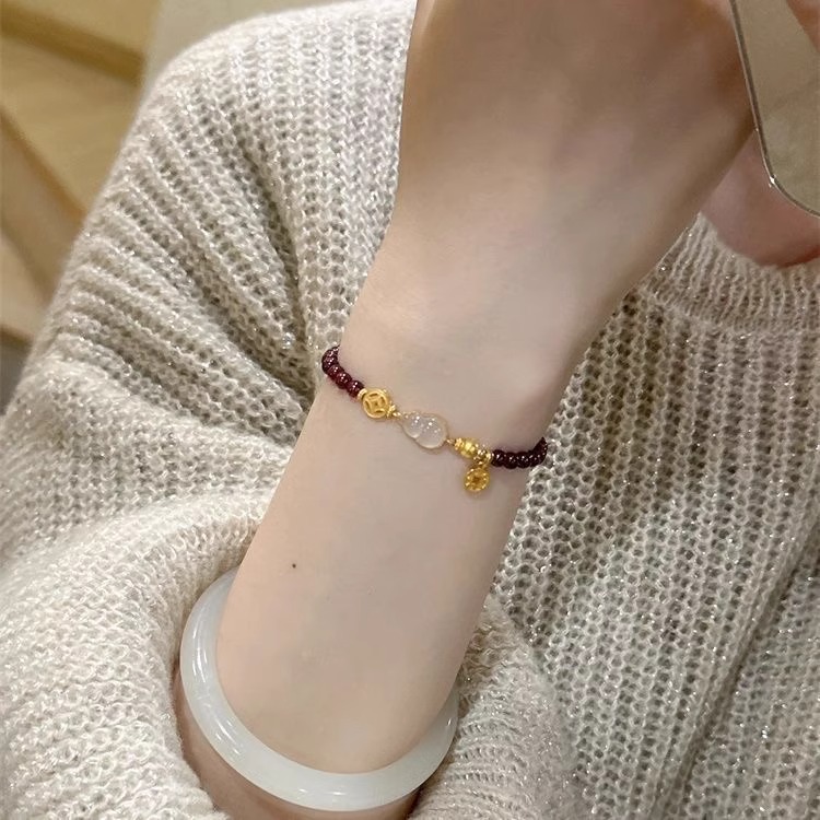 中式福禄双全手串招财葫芦手链复古宫廷风闺蜜仿石榴石开年好运气
