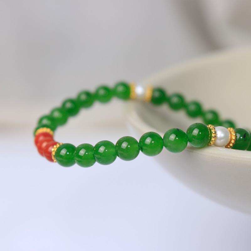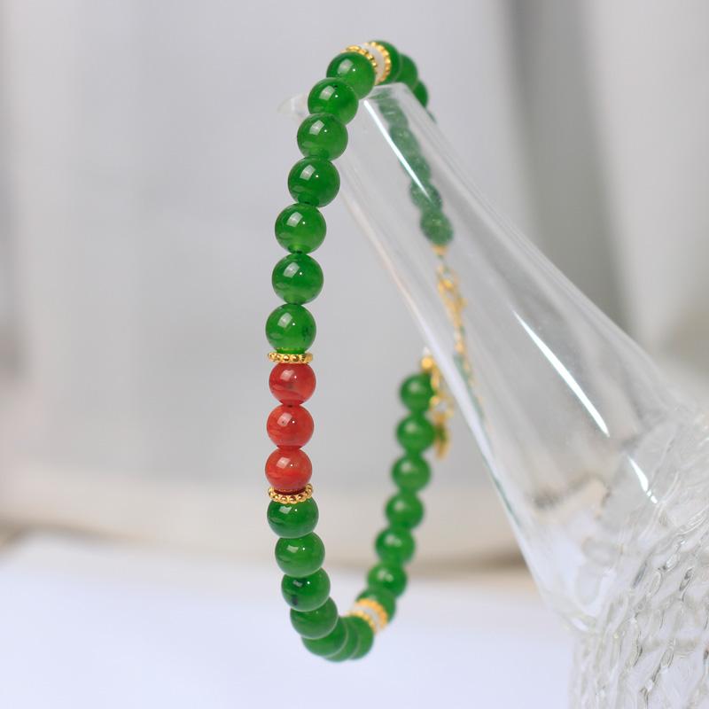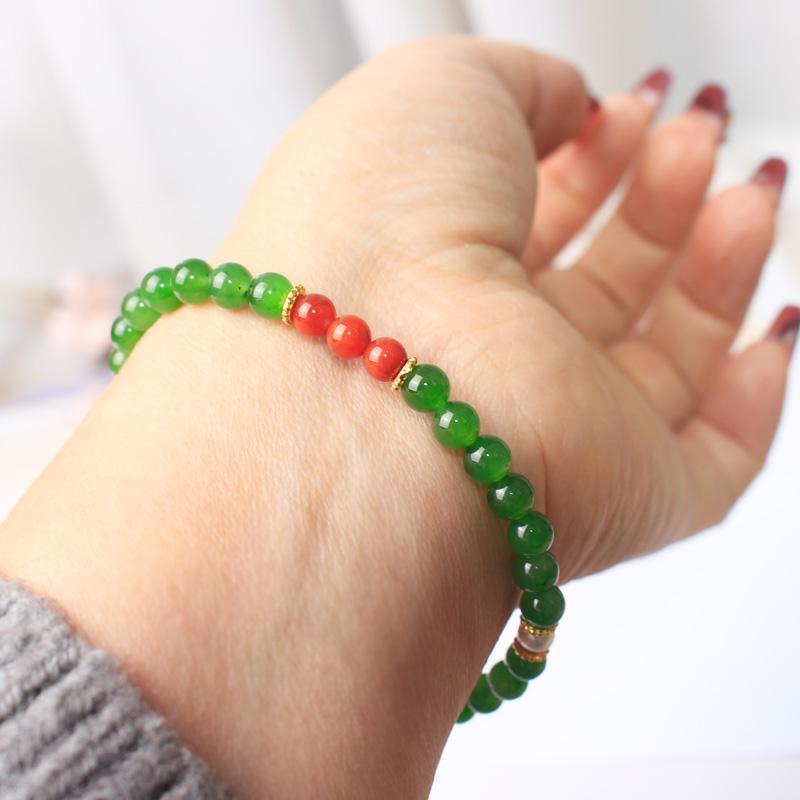 天然和田玉碧玉手串女款冰底老料5mm南红手链单圈手饰送女友礼物