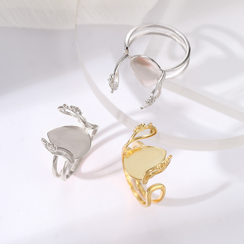 男女时尚个性网红食指指环空托配件DIY镶嵌蜜蜡翡翠玉石戒指空托