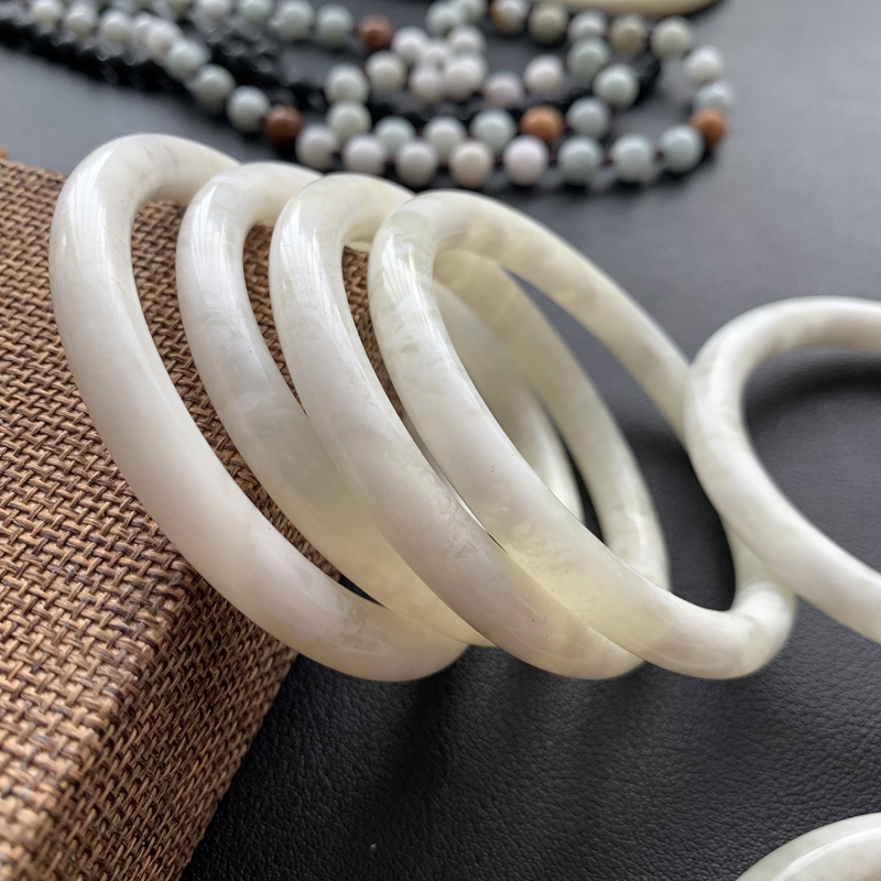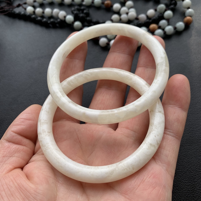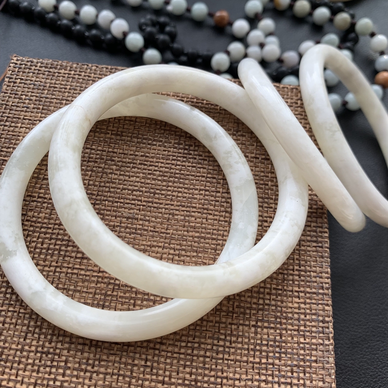 【霜花玉全】AA天然岫玉 雪花玉 叮当镯女手镯一物一图可选