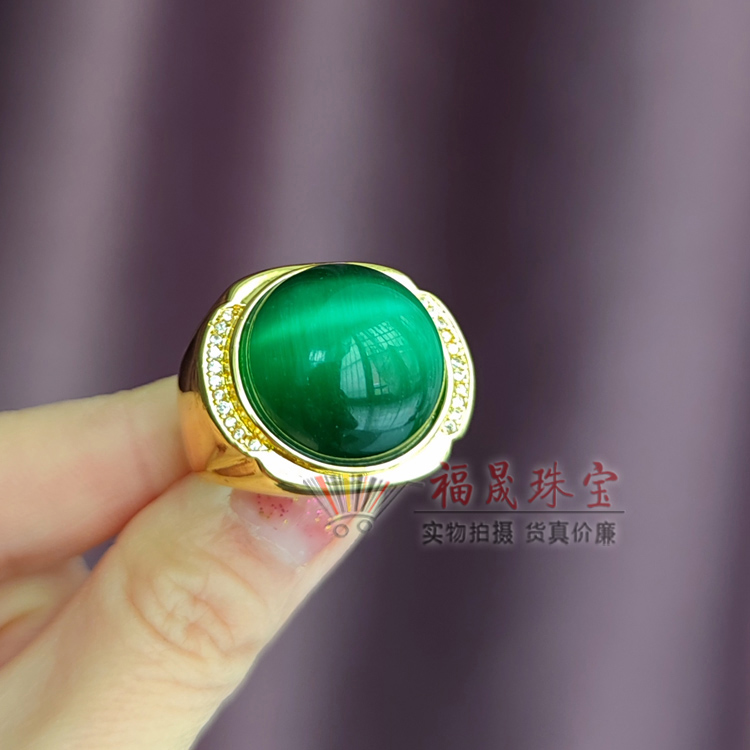 霸气大戒面猫眼石戒指男士碧绿色胖粗手指带女款戒指老板戒指环
