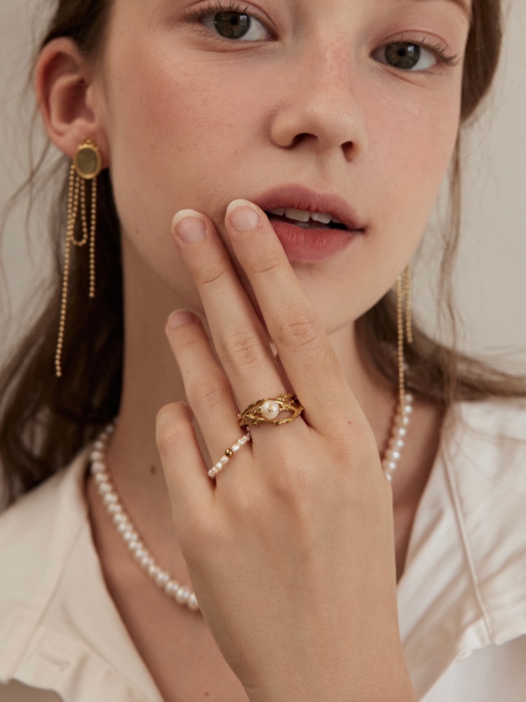 Timeless Chic 法式碎金开口戒指 天然巴洛克珍珠 叠戴 小众设计