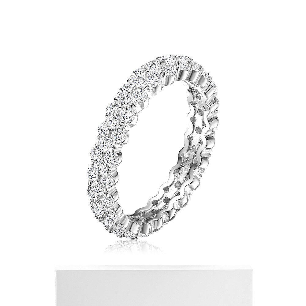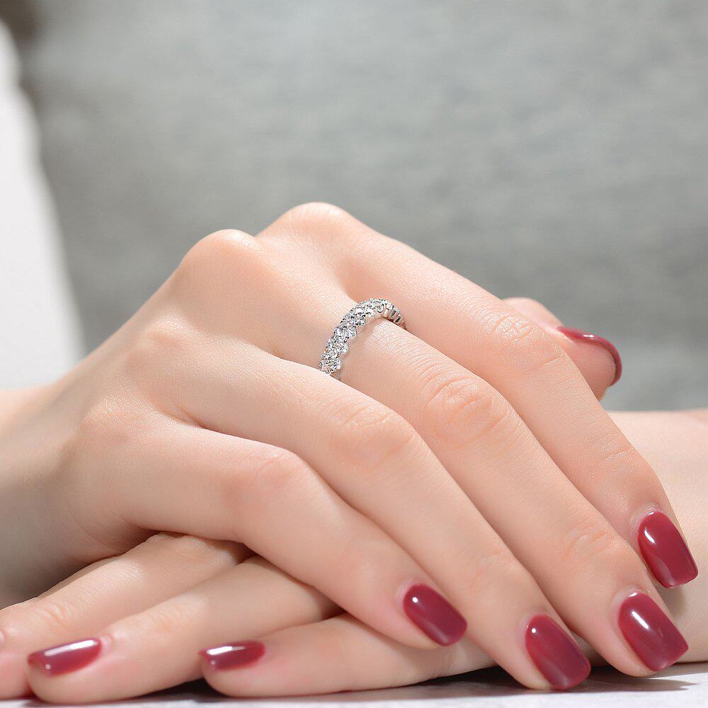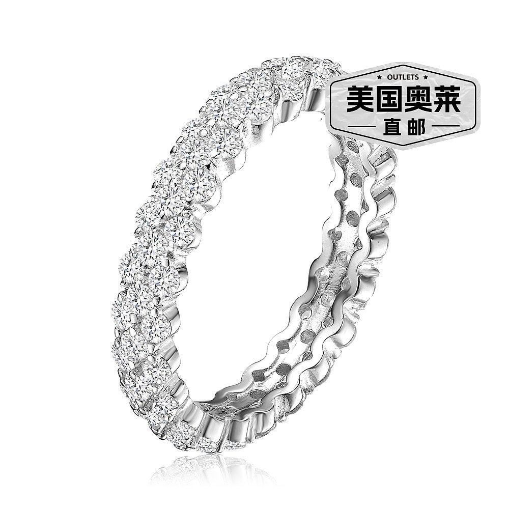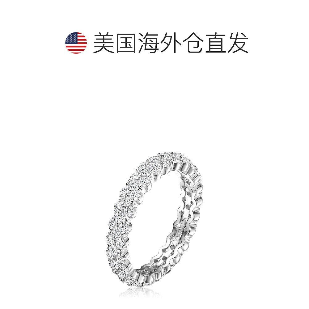 自营 GENEVIVE 纯银透明圆形立方氧化锆弯曲永恒戒指 - 银白色 美