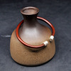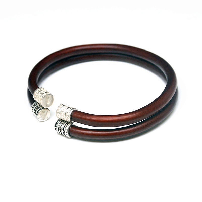 S925纯银野生西藏鸡血藤无节手镯细藤4-5mm粗加银头款民族风饰品